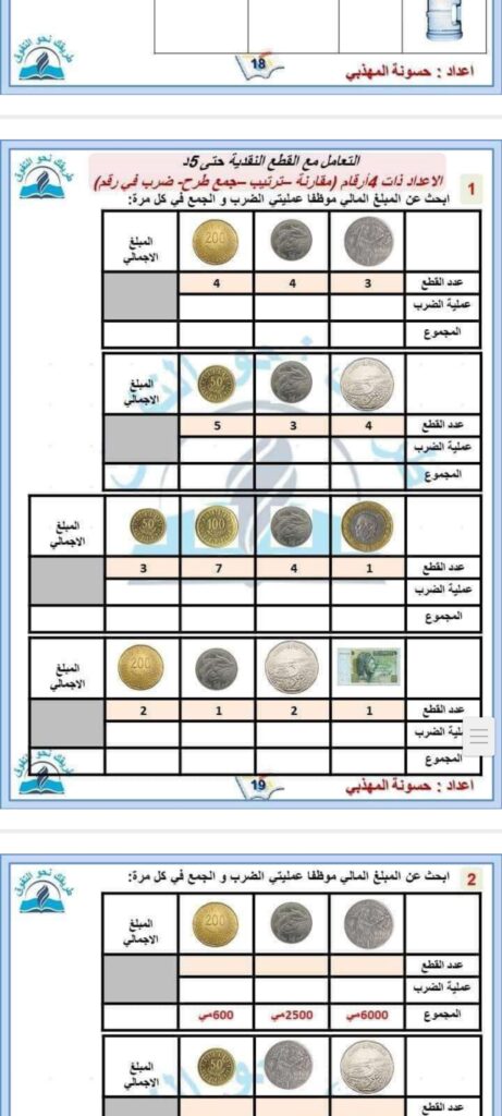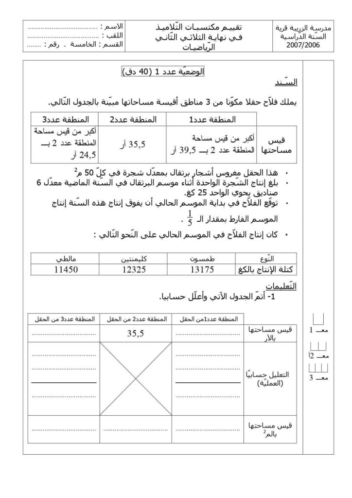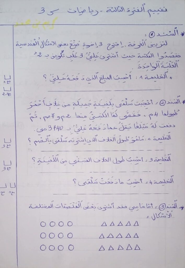 أوراق عمل مميزة في الرياضيات كامل الثلاثي الثاني سنة ثالثة 3️⃣ أوراق عمل – رياضيات – كامل الثلاثي الثاني