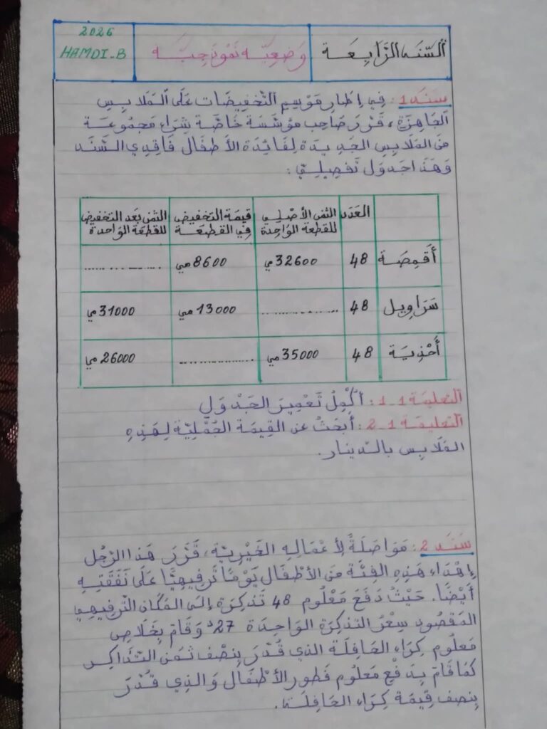تقاييم الثلاثي الثاني مرفقة بالإصلاح المدقق لتلاميذ السنة الرابعة 4️⃣