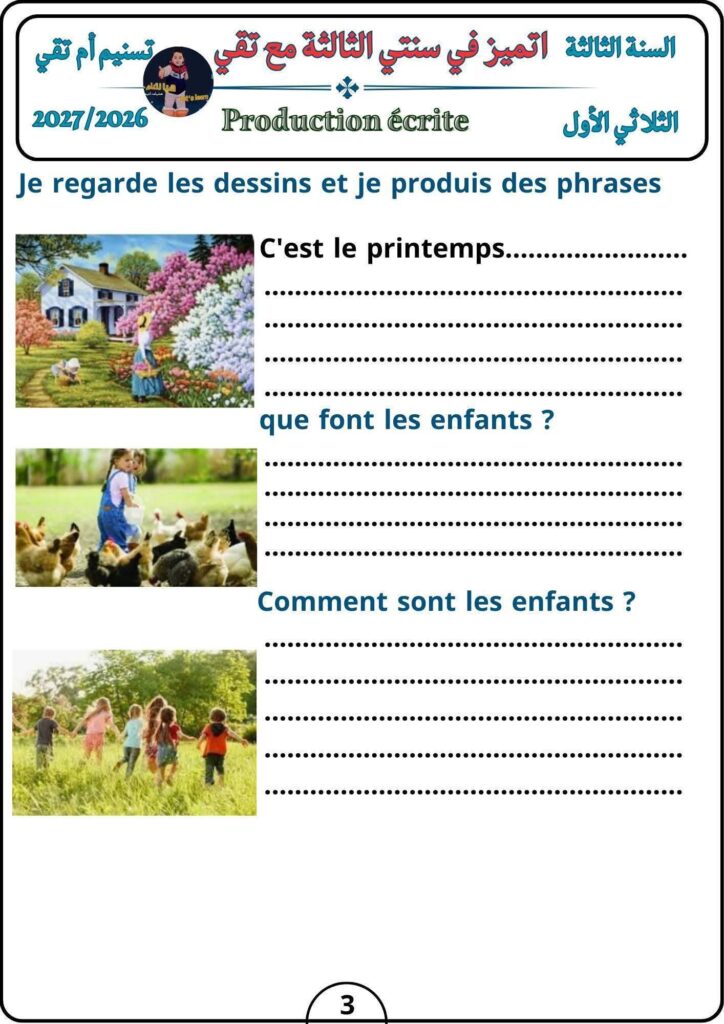 إنتاجات كتابية رائعة للإستئناس لتلاميذ السنوات الثانية 2️⃣ و الثالثة 3️⃣