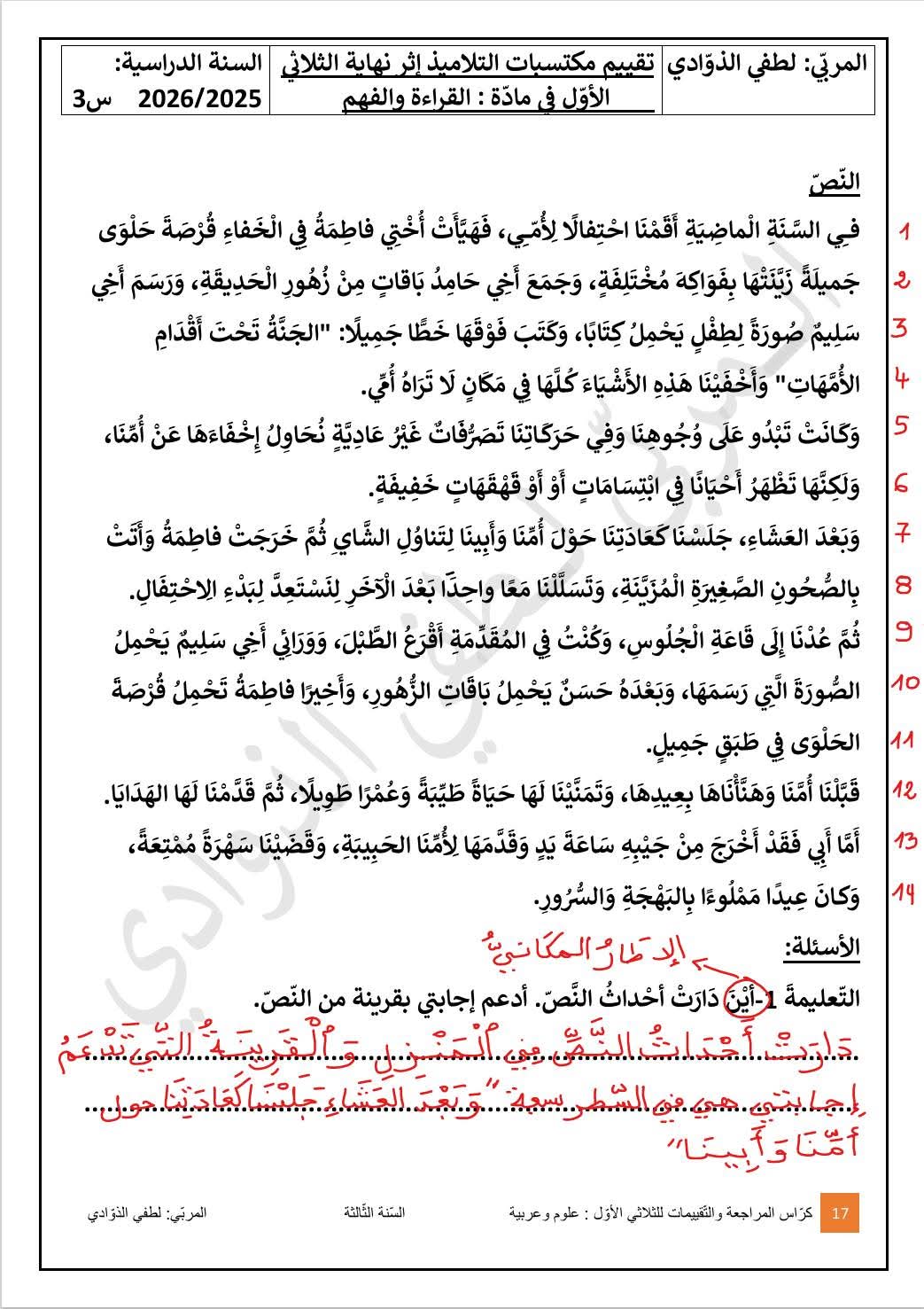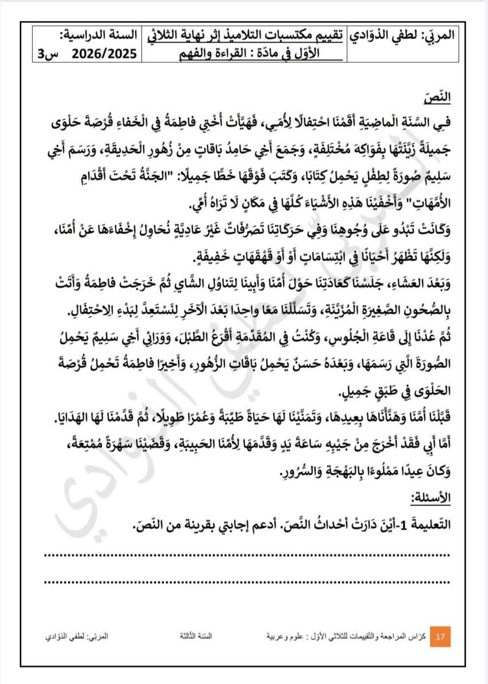 أستعد لامتحانات الثلاثي الأول رياضيات، قراءة وفهم، إنتاج كتابي سنة ثالثة 3️⃣بواسطة ADMIN / 4 ديسمبر، 2025 أستعد لامتحانات الثلاثي الأول رياضيات، قراءة وفهم، إنتاج كتابي سنة ثالثة 3️⃣