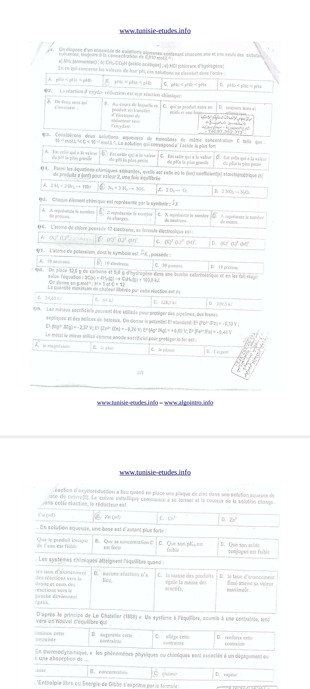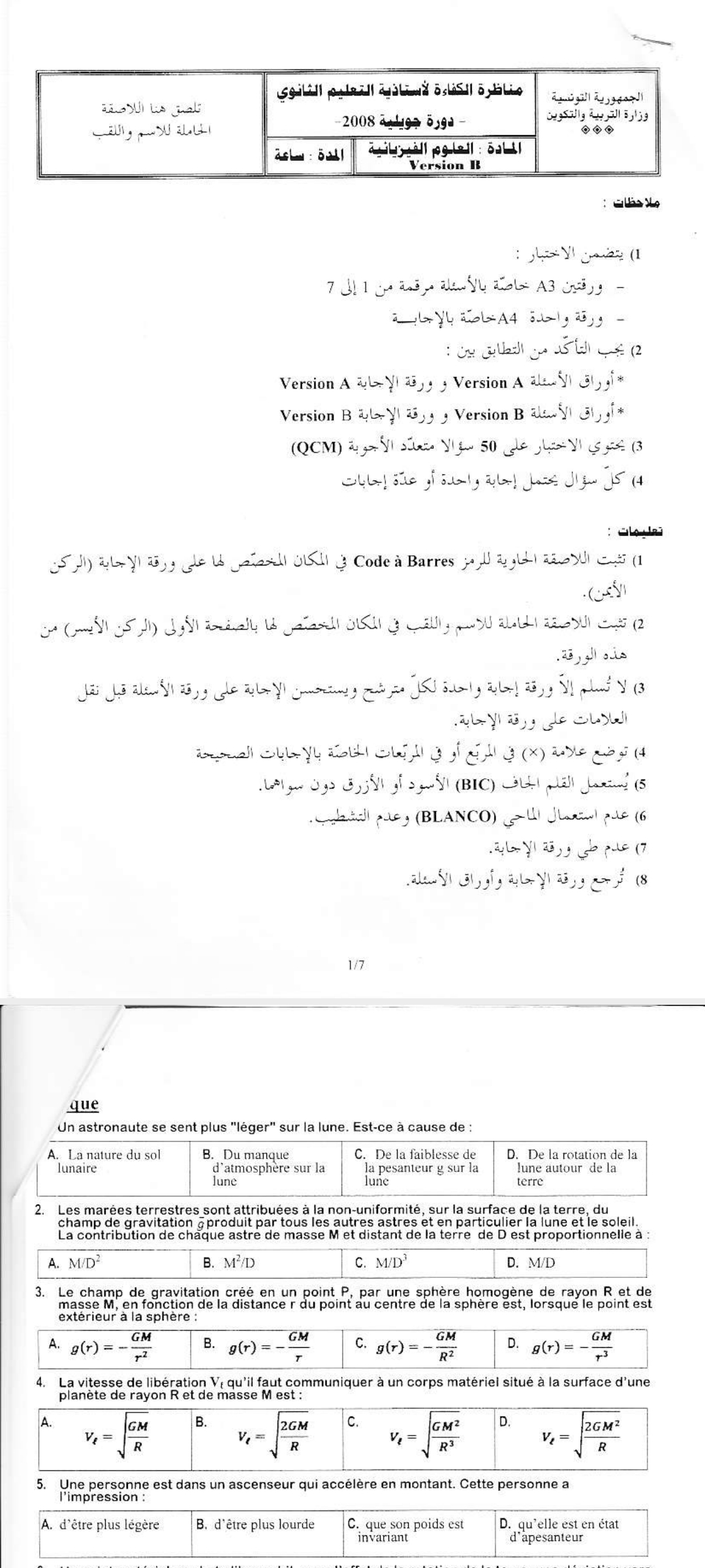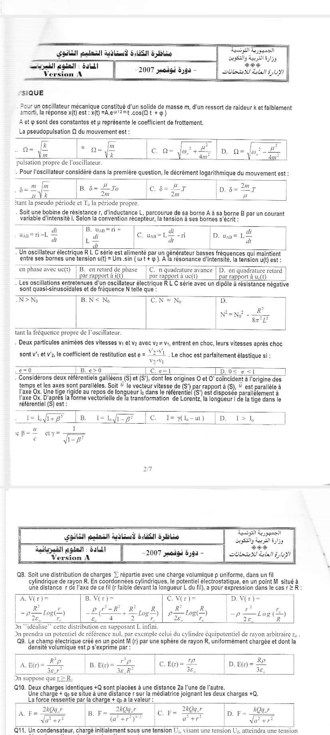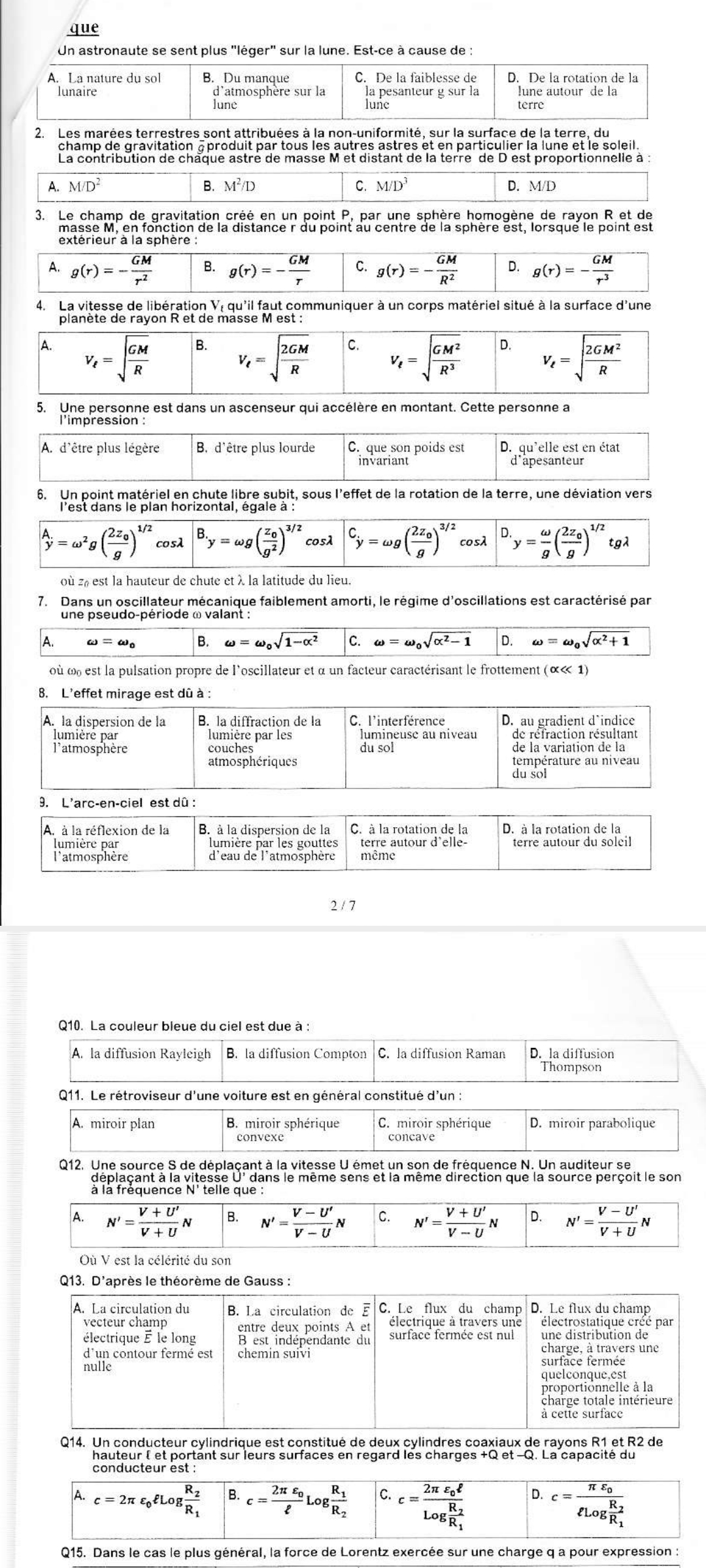 إختبارات qcm كاباس مادة الفيزياء دورات 2007 و 2008 و 2009 مرفقة بالإصلاح