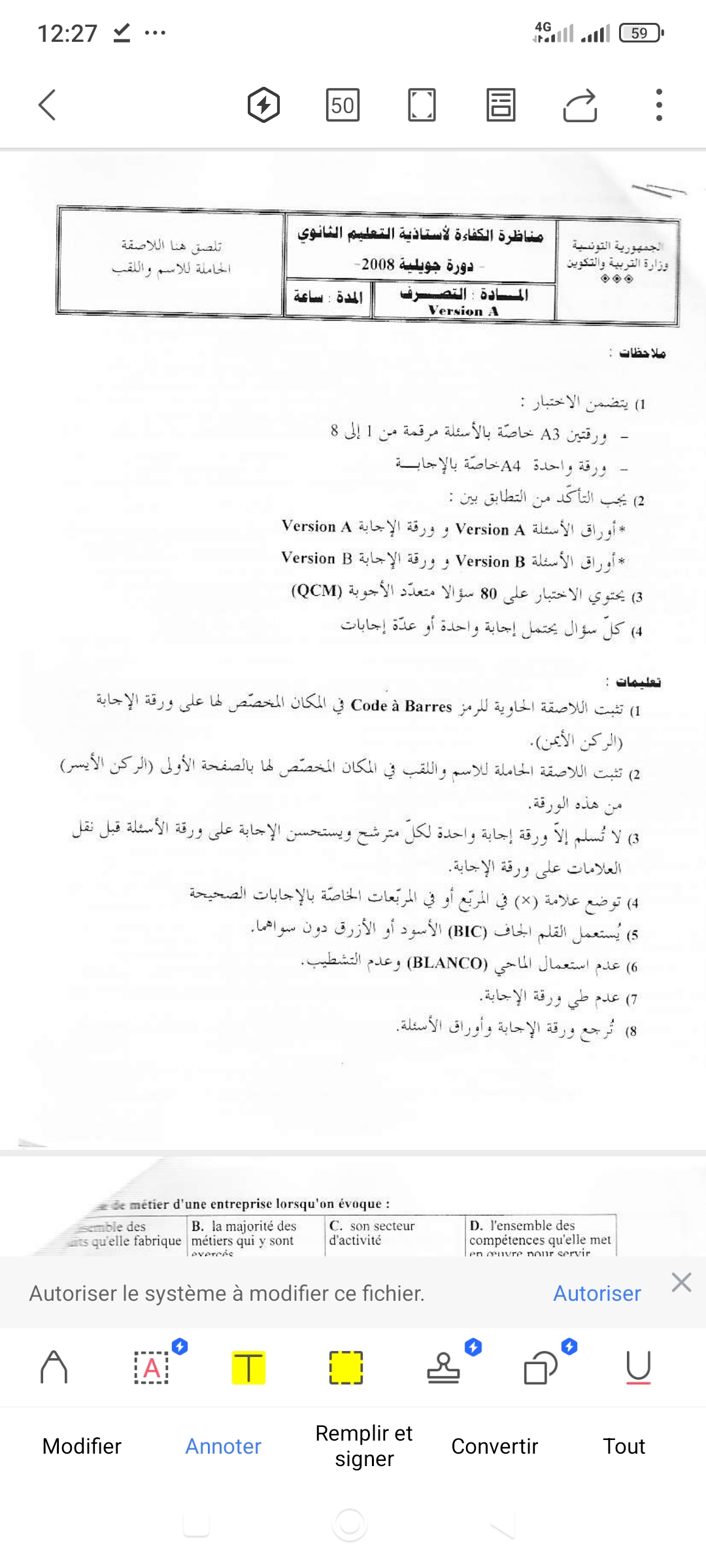 إختبار qcm كاباس مادة التصرف دورة 2008 مرفق بالإصلاحبواسطة ADMIN / 12 فبراير، 2026 إختبار qcm كاباس مادة التصرف دورة 2008 مرفق بالإصلاح gestion_capes_juill_2008_a_www.tunisie-etudes.info correction_capes_2008_a_gestion__www.tunisie-etudes.info