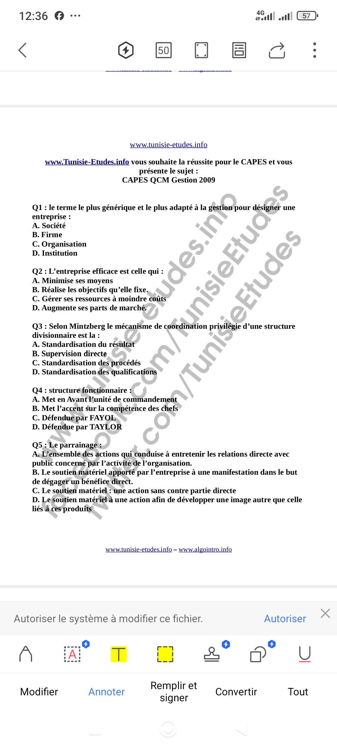 إختبار qcm كاباس مادة التصرف دورتي 2007 و 2009 مرفق بالإصلاحبواسطة ADMIN / 12 فبراير، 2026 إختبار qcm كاباس مادة التصرف دورتي 2007 و 2009 مرفق بالإصلاح gestion_capes_nov_2007_b_www.tunisie-etudes.info capes_qcm_2009_gestion__www.tunisie-etudes.info