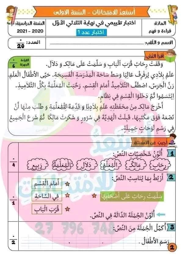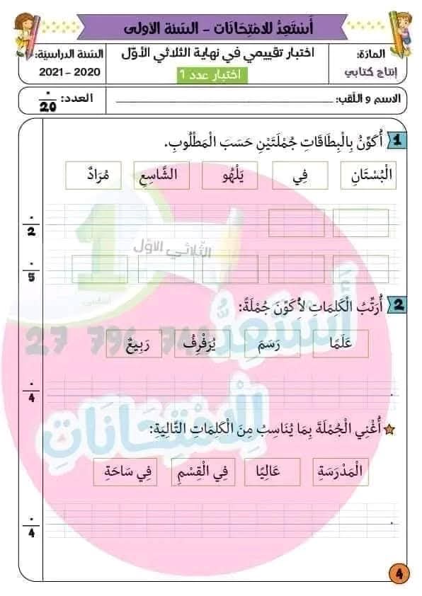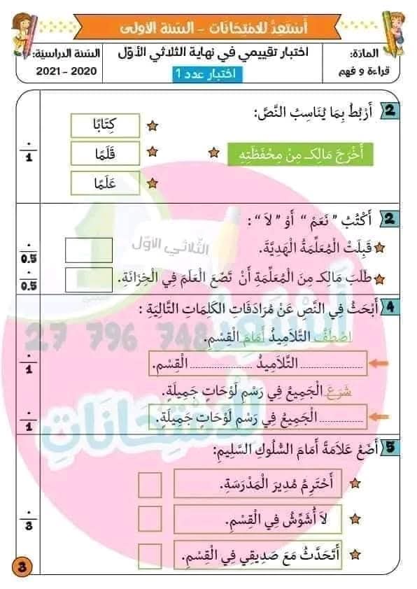 إمتحانات الثلاثي الأول سنة أولى 1️⃣جميع المواد - فضاء التميز للتعليم