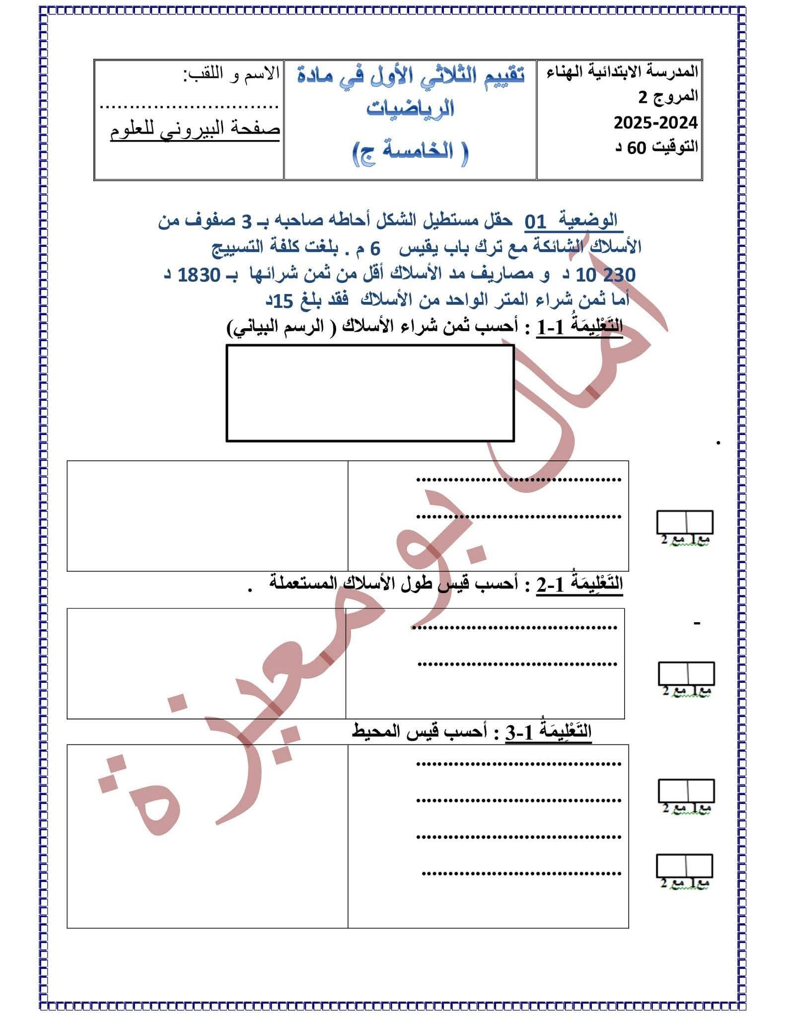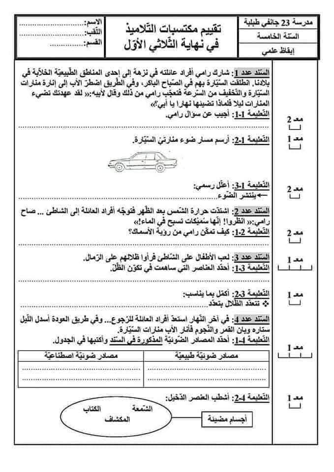 إمتحانات الثلاثي الأول مرفقة بالإصلاح في كل المواد سنة خامسة 5️⃣بواسطة ADMIN / 8 ديسمبر، 2025 إمتحانات الثلاثي الأول مرفقة بالإصلاح في كل المواد سنة خامسة 5️⃣