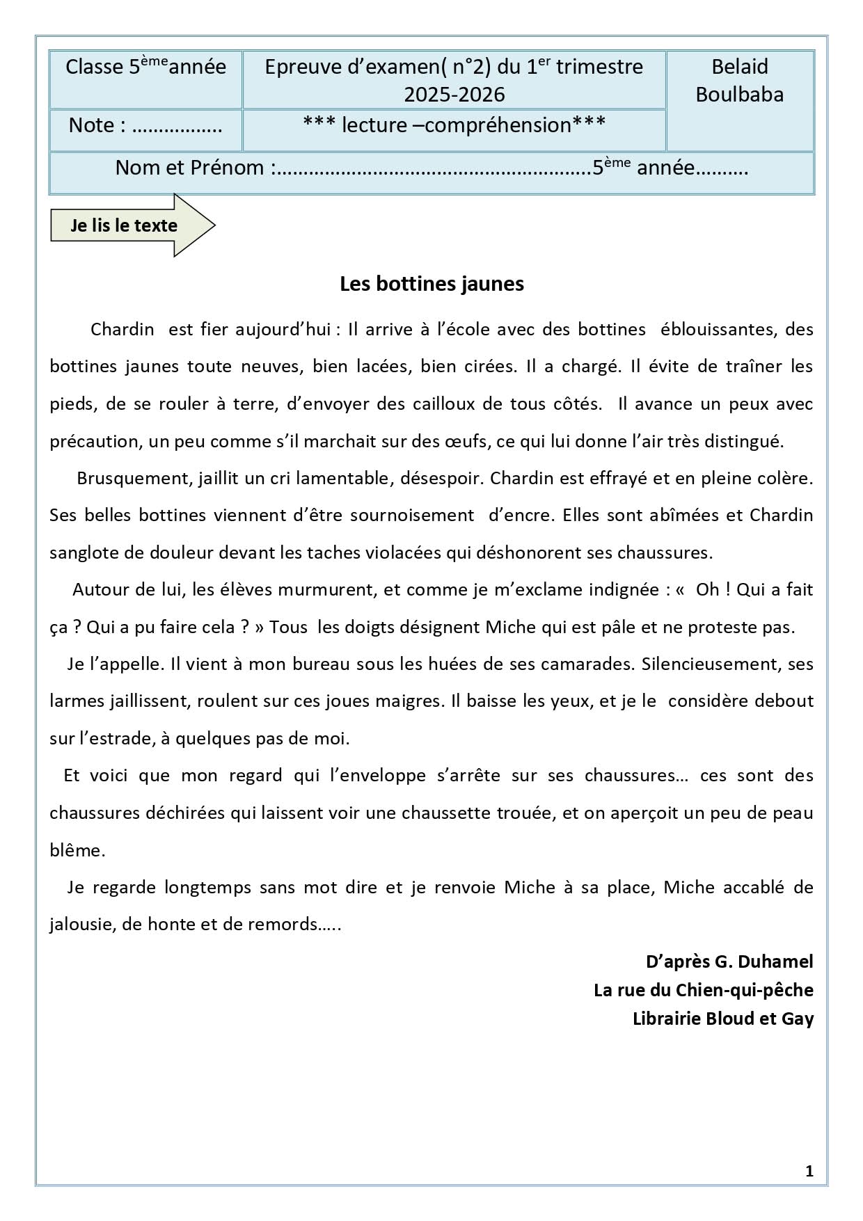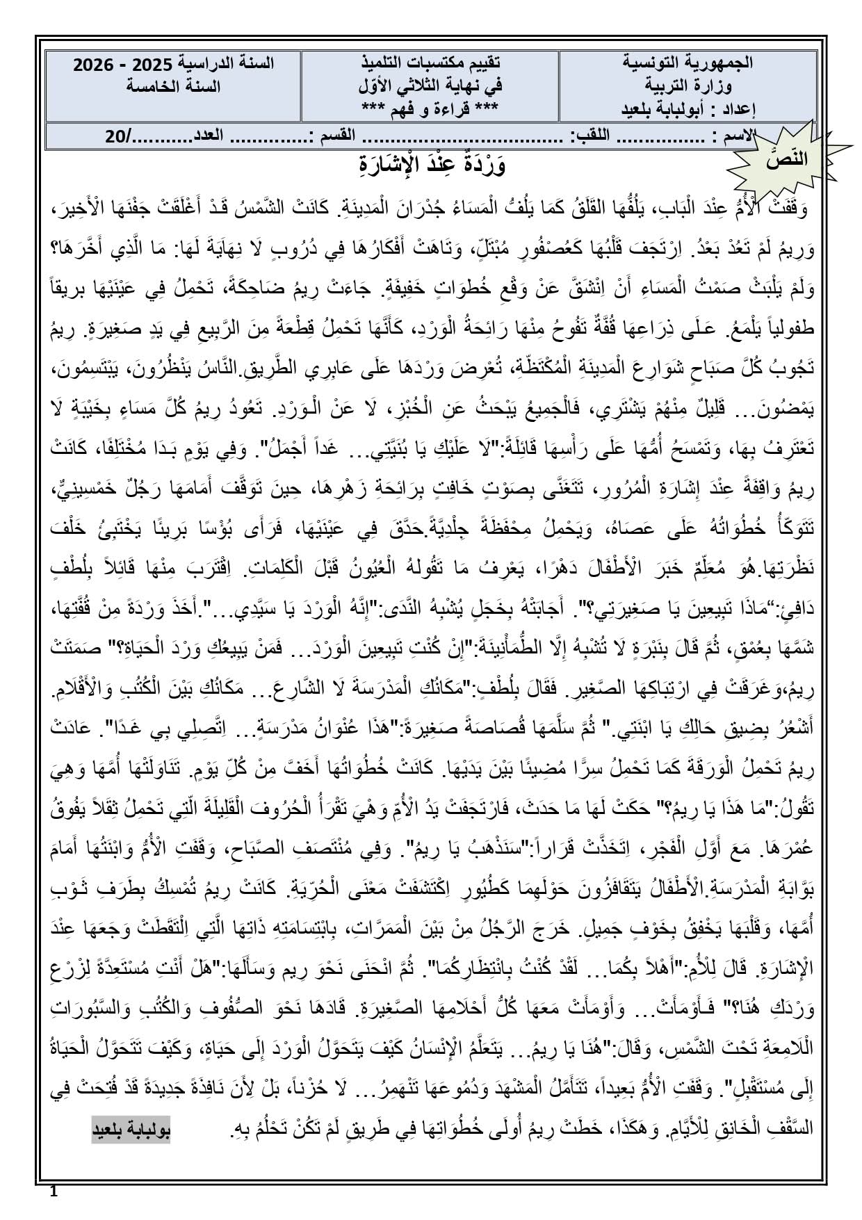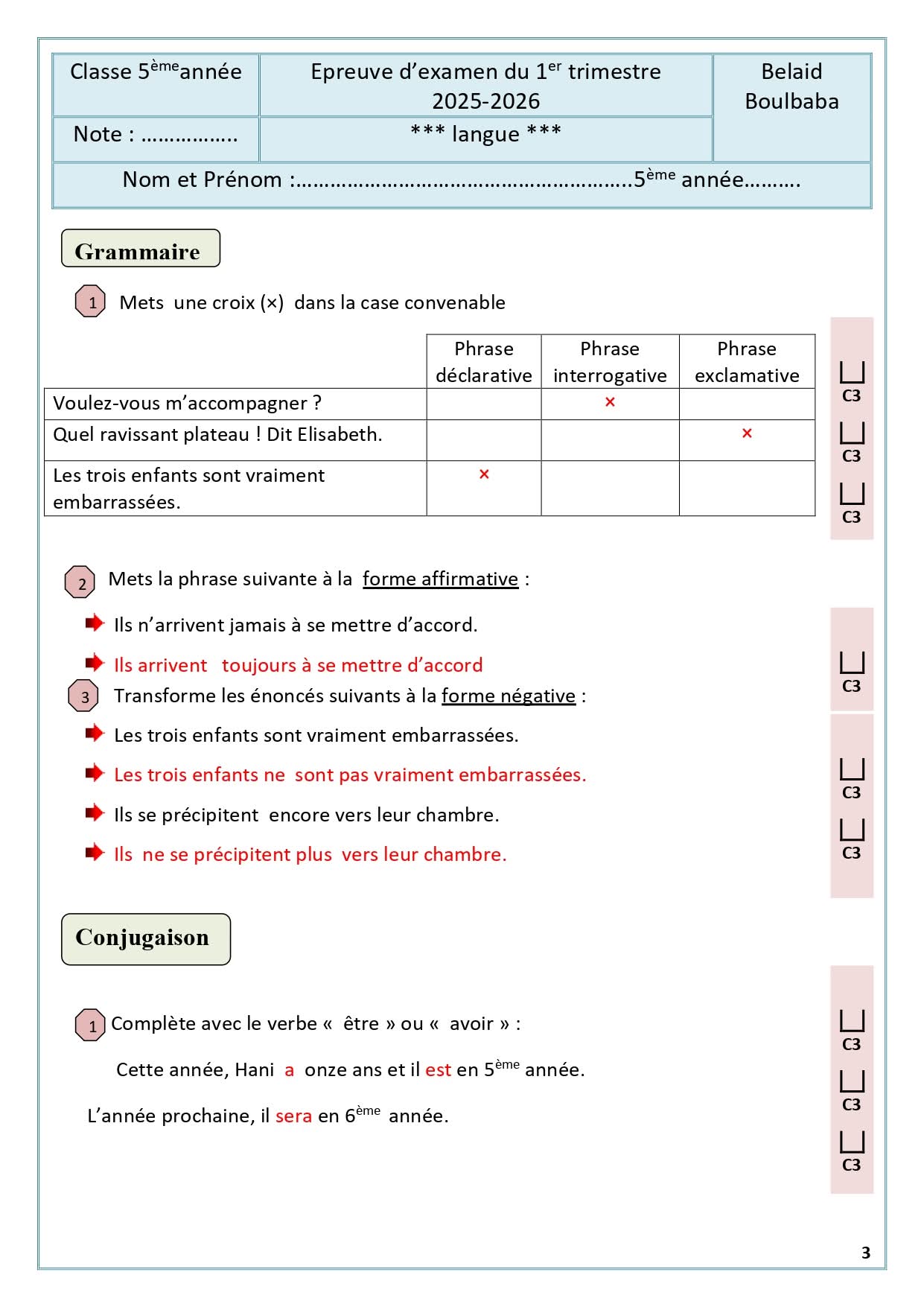 إمتحانات الثلاثي الأول مرفقة بالإصلاح المدقق في جميع المواد لتلاميذ السنة الخامسة 5️⃣