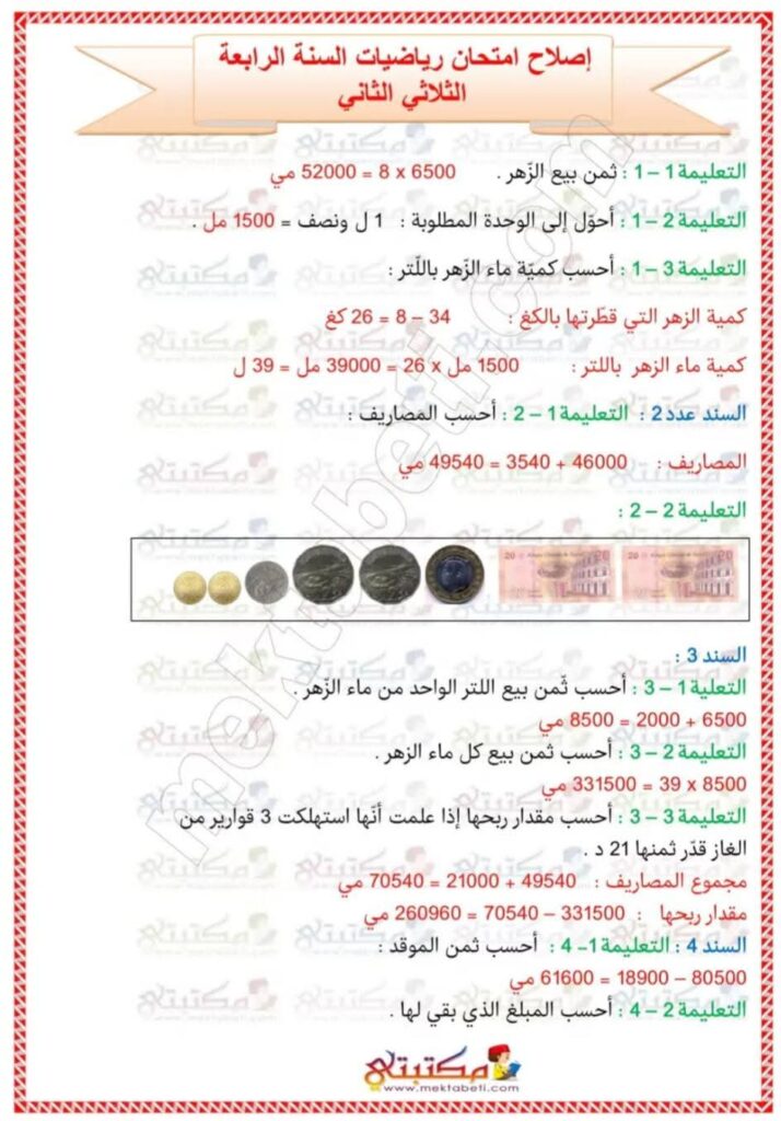 إمتحانات جيدة مرفقة بالإصلاح في الرياضيات لتلاميذ السنة الرابعة 4️⃣ الثلاثي الثانيبواسطة ADMIN / 5 مارس، 2026 إمتحانات جيدة مرفقة بالإصلاح في الرياضيات لتلاميذ السنة الرابعة 4️⃣ الثلاثي الثاني
