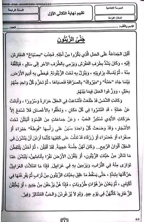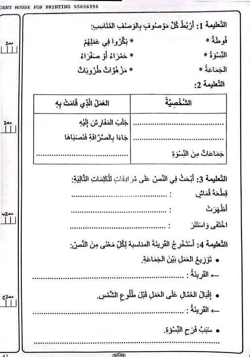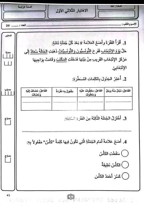 إمتحانات قراءة و قواعد لغة سنة رابعة 4️⃣ الثلاثي الأول - فضاء التميز للتعليم