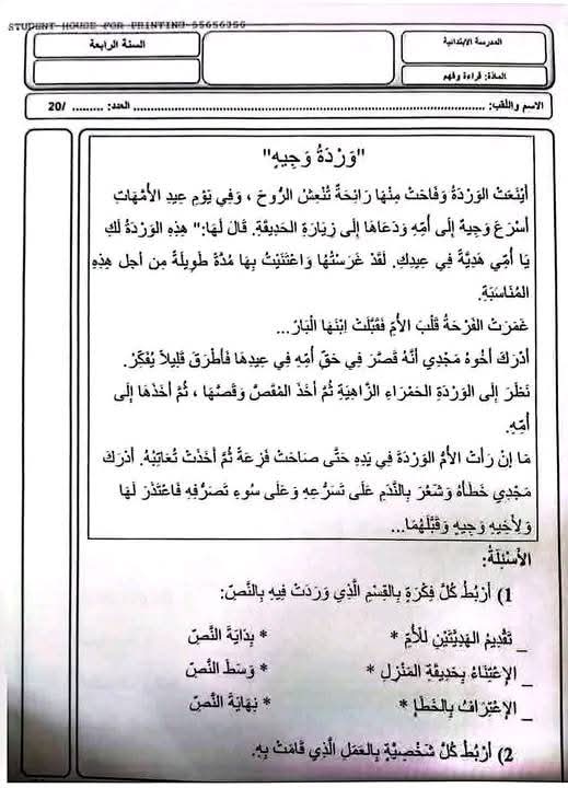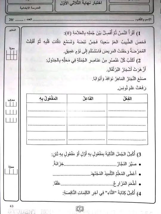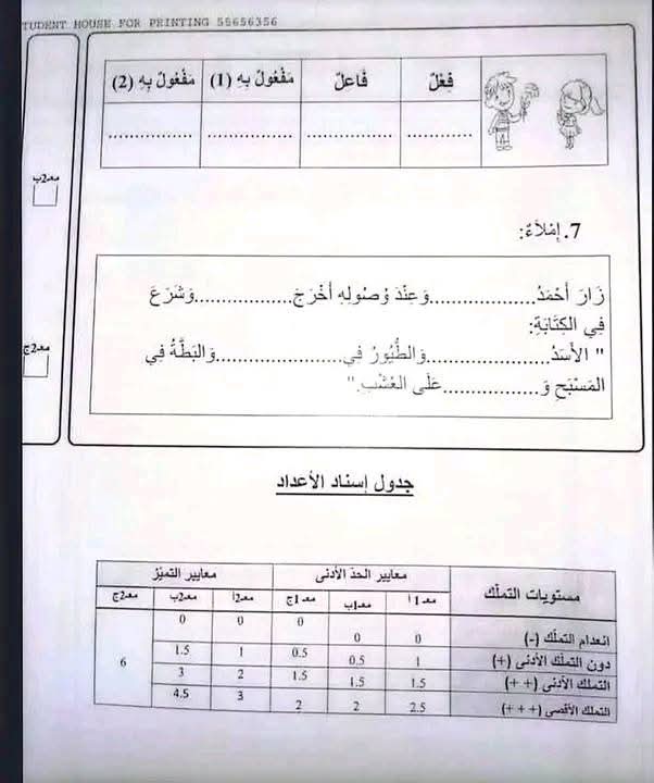 إمتحانات قراءة و قواعد لغة سنة رابعة 4️⃣ الثلاثي الأول