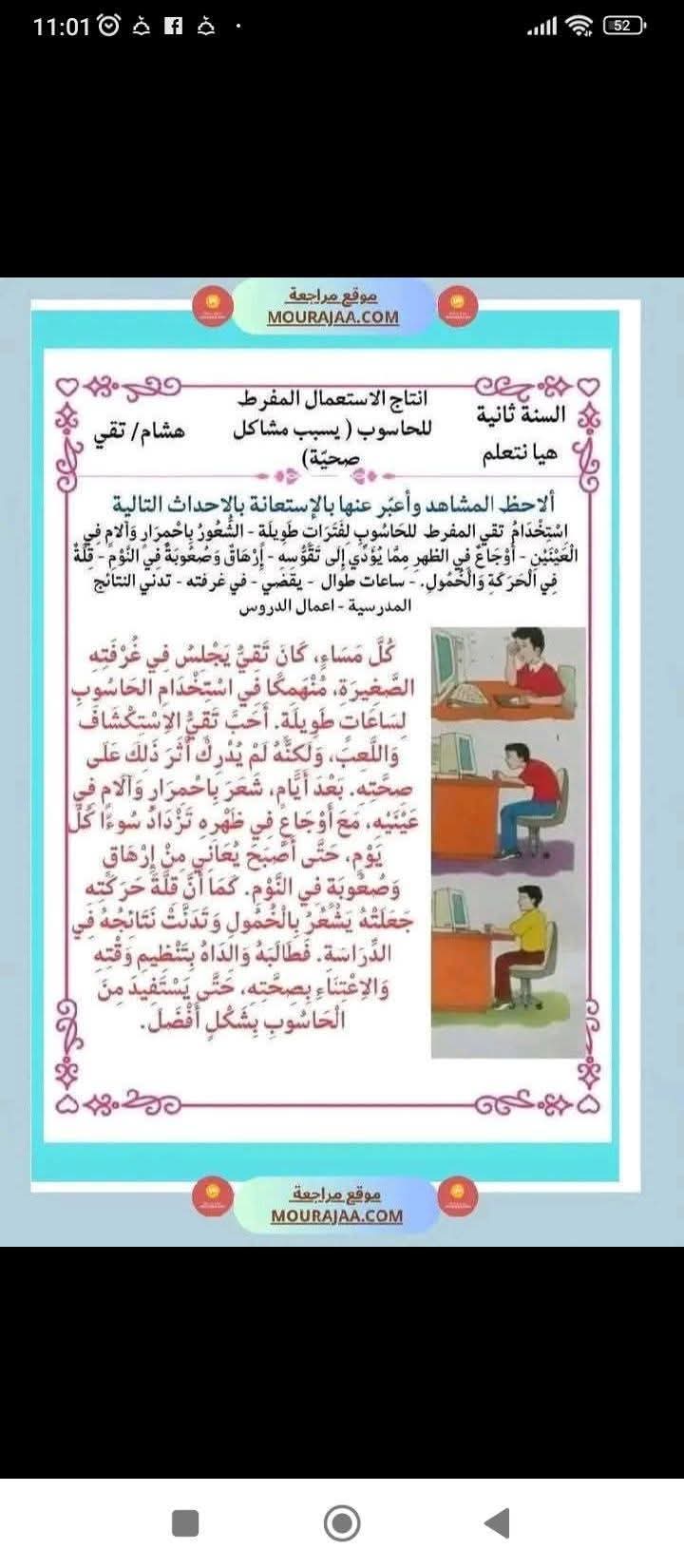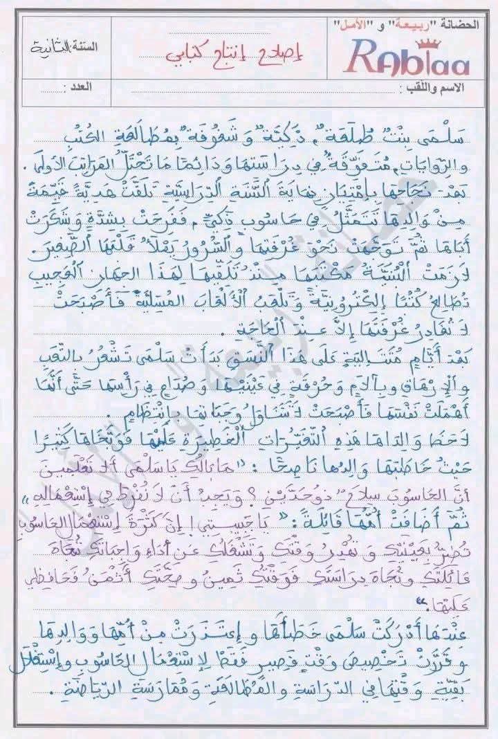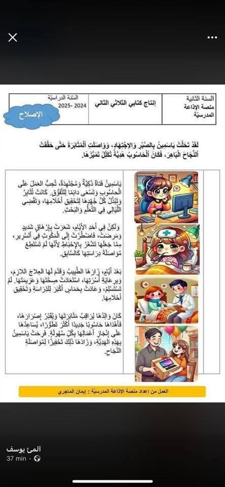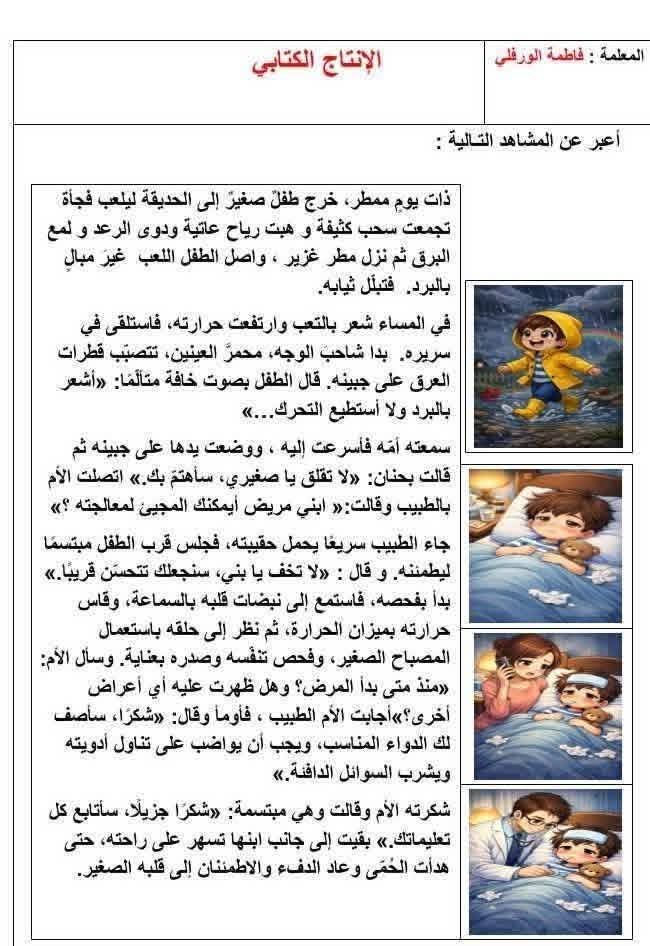إنتاجات كتابية حول المرض و الحاسوب لتلاميذ السنوات الإبتدائيةبواسطة ADMIN / 24 فبراير، 2026 إنتاجات كتابية حول المرض و الحاسوب لتلاميذ السنوات الإبتدائية