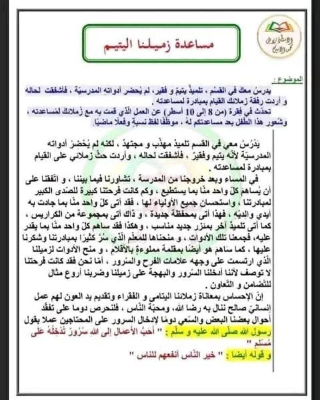 إنتاجات كتابية رائعة حول المساعدة و التضامنبواسطة ADMIN / 24 فبراير، 2026 إنتاجات كتابية رائعة حول المساعدة و التضامن