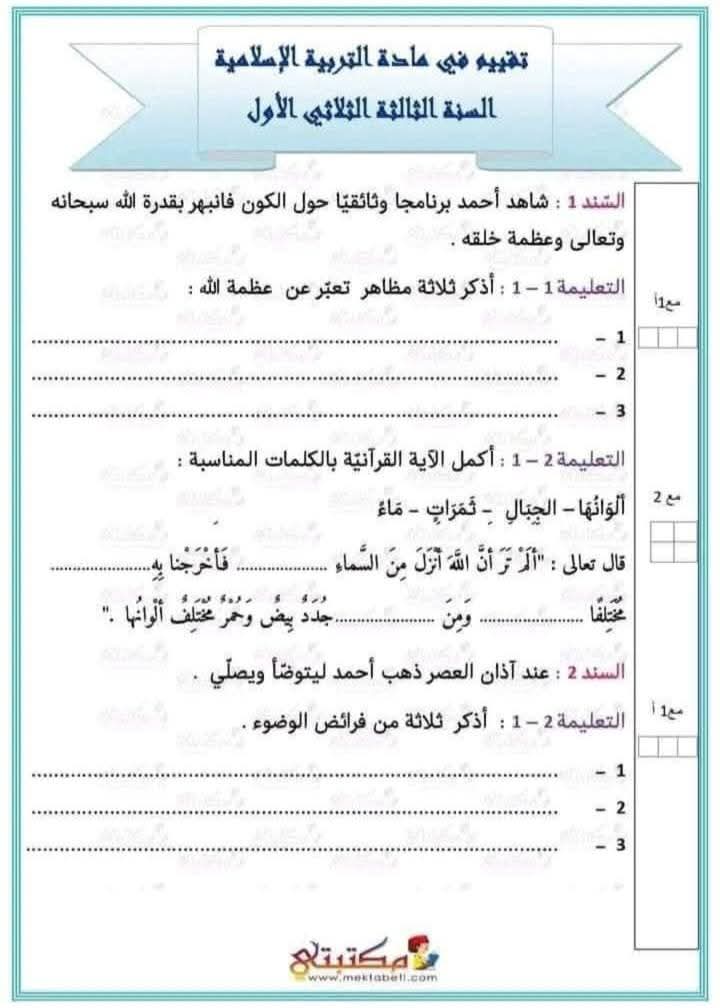 تقييمات الثلاثي الأول في جميع المواد مرفقة بالإصلاح لتلاميذ السنة الثالثة 3️⃣بواسطة ADMIN / 26 أكتوبر، 2025 تقييمات الثلاثي الأول في جميع المواد مرفقة بالإصلاح لتلاميذ السنة الثالثة 3️⃣ تقييمات الثلاثي الأول في كل المواد سنة ثالثة