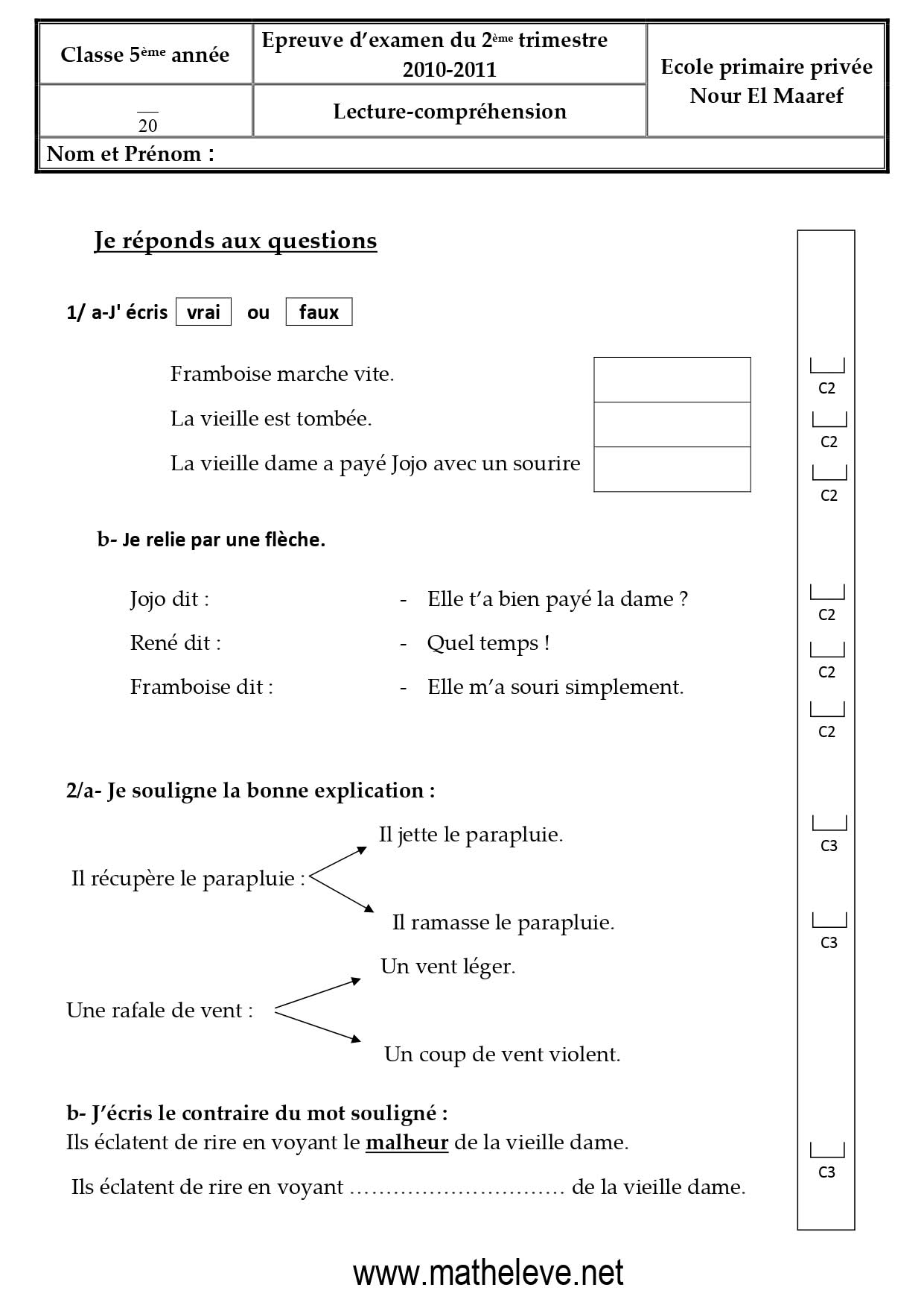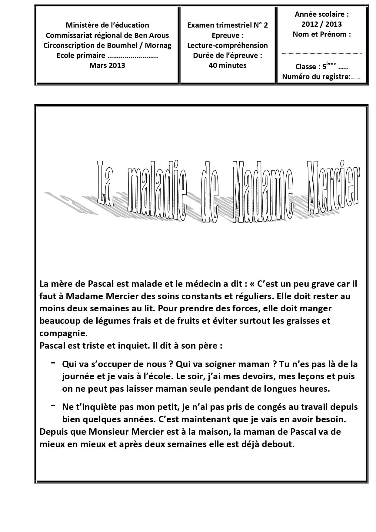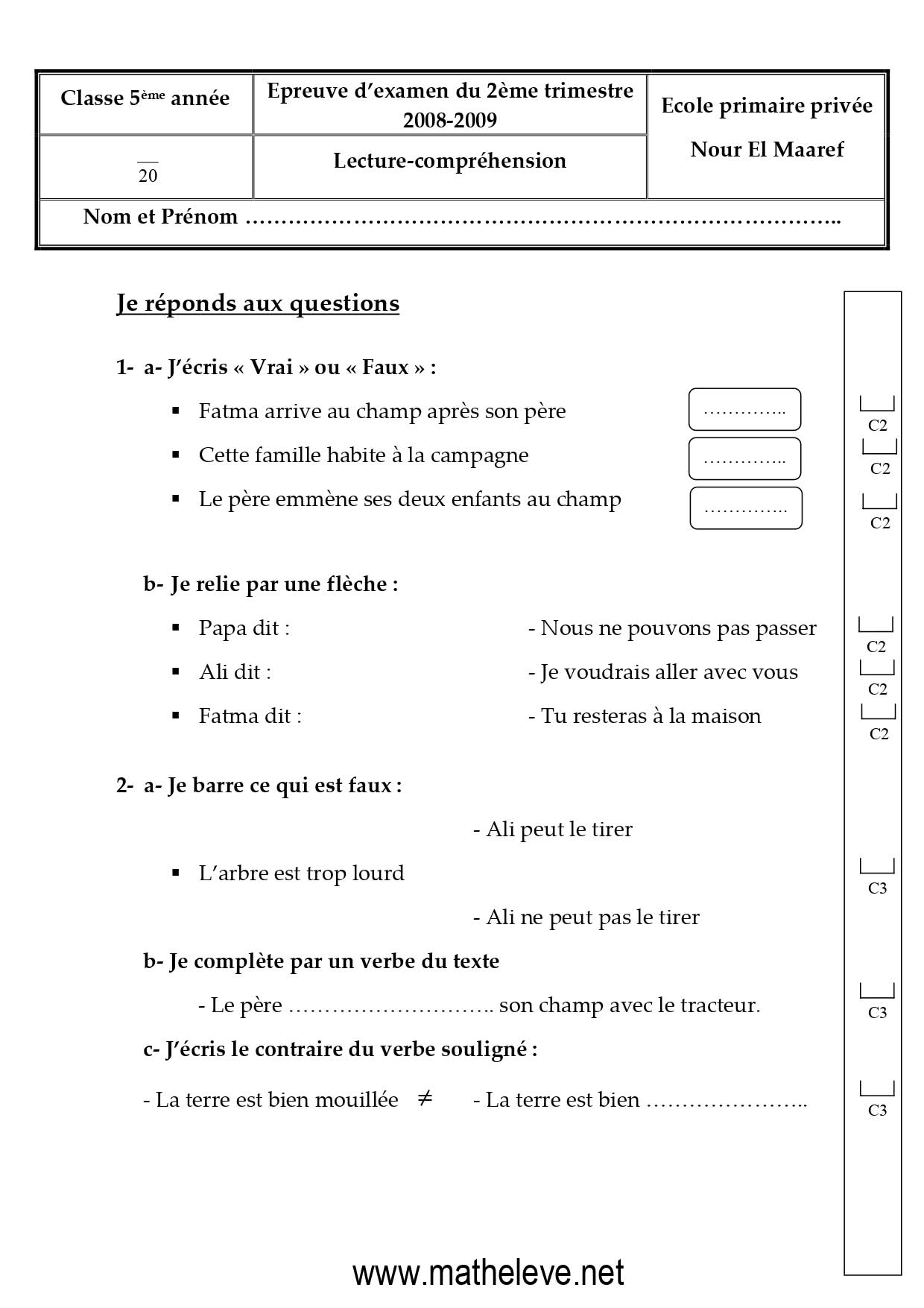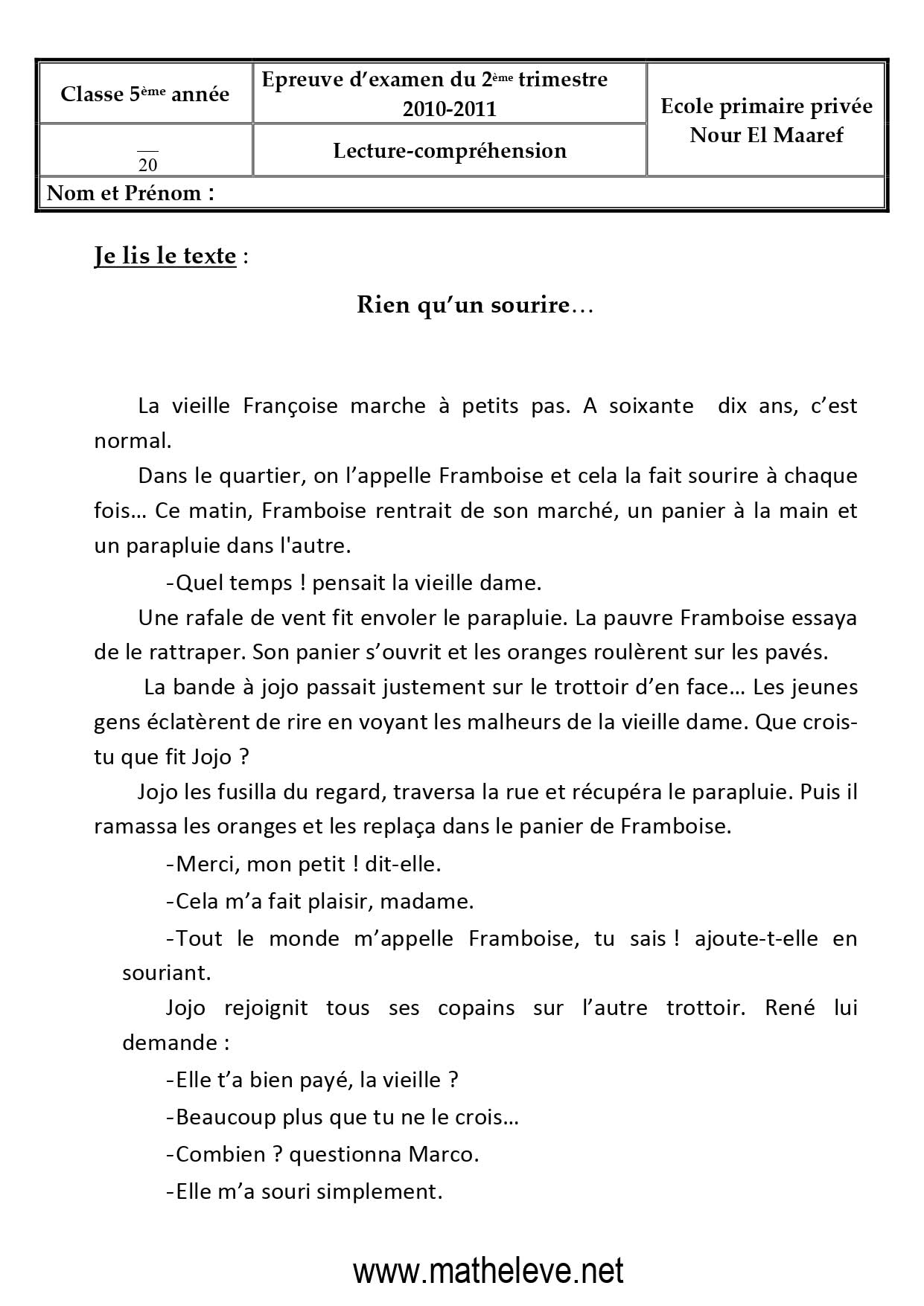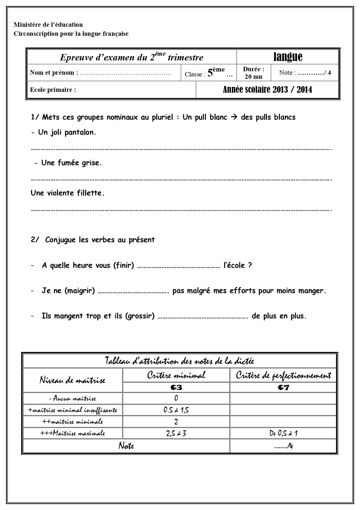 تقييمات الثلاثي الثاني في الفرنسية لتلاميذ السنة الخامسة 5️⃣ مرفقة بالإصلاحبواسطة ADMIN / 25 يناير، 2026 تقييمات الثلاثي الثاني في الفرنسية لتلاميذ السنة الخامسة 5️⃣ مرفقة بالإصلاح fran5eme