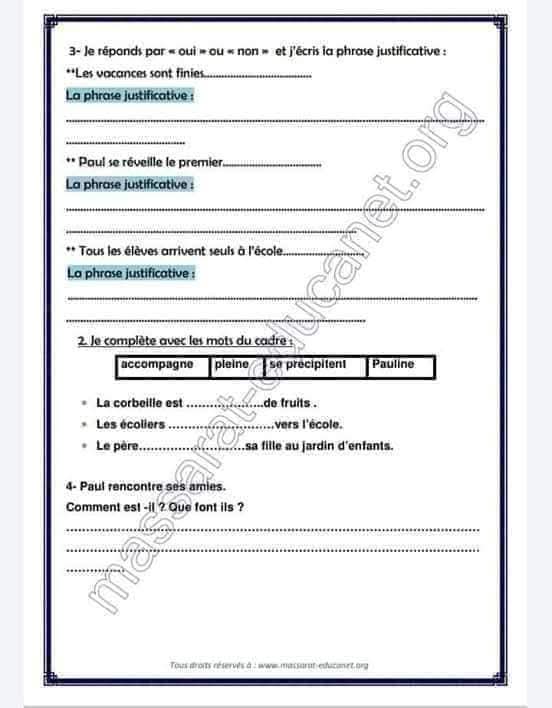 إمتحانات-في-مادة-الفرنسية-الرابعة-إبتدائي-الثلاثي-الأول-معلمي-أونلاين-نموذج-رقم-7