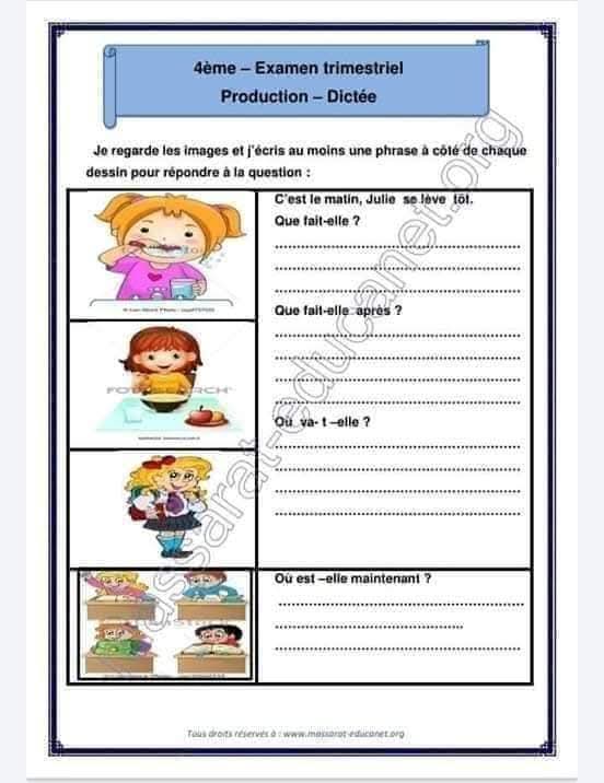 إمتحانات-في-مادة-الفرنسية-الرابعة-إبتدائي-الثلاثي-الأول-معلمي-أونلاين-نموذج-رقم-4