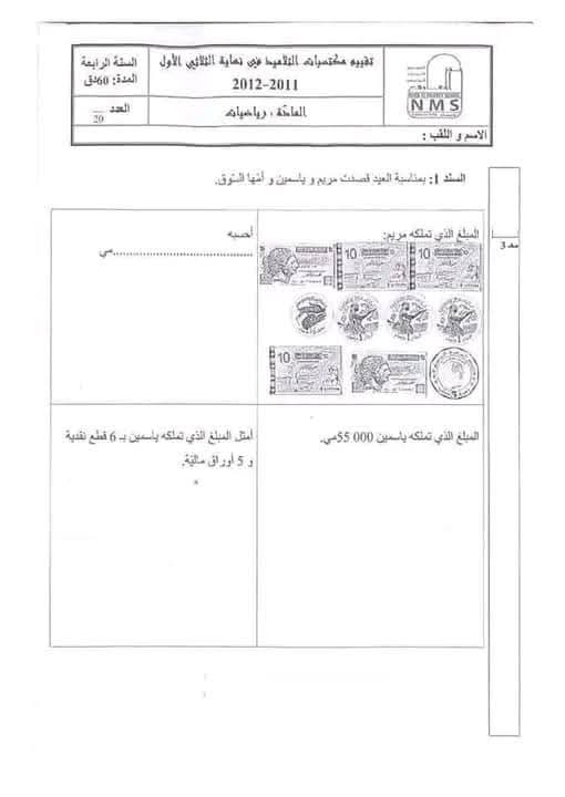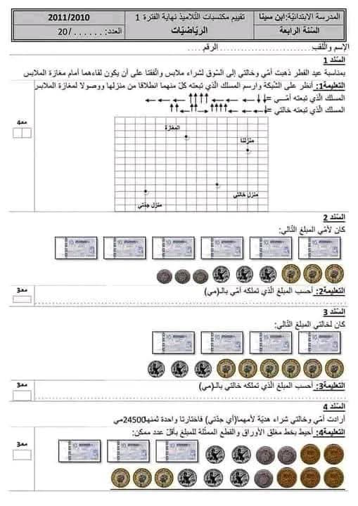 إمتحانات-الرياضيات-الرابعة-إبتدائي-الثلاثي-الأول-معلمي-أونلاين-نموذج-رقم-11