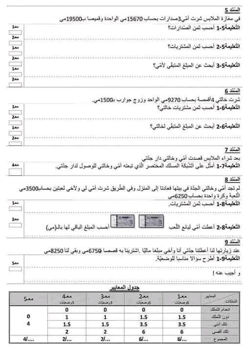 إمتحانات-الرياضيات-الرابعة-إبتدائي-الثلاثي-الأول-معلمي-أونلاين-نموذج-رقم-9