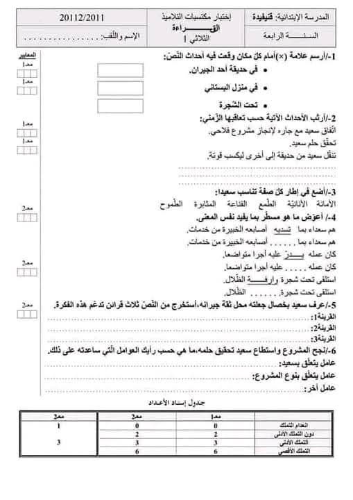 إمتحانات-في-مادة-القراءة-الرابعة-إبتدائي-الثلاثي-الأول-معلمي-أونلاين-نموذج-رقم-7
