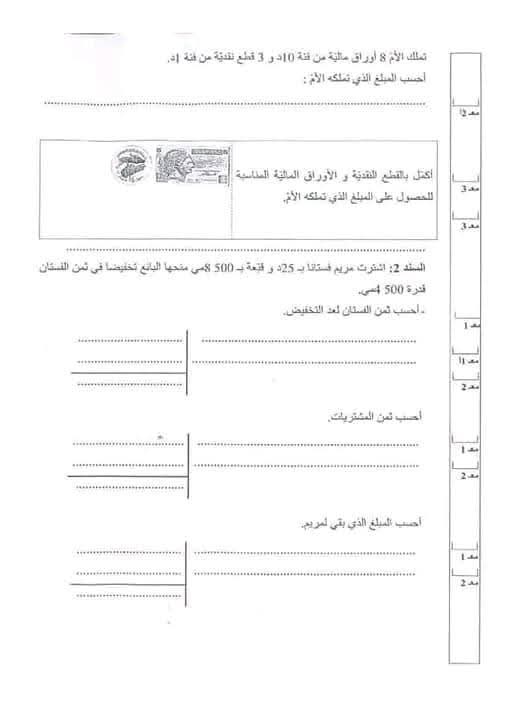 إمتحانات-الرياضيات-الرابعة-إبتدائي-الثلاثي-الأول-معلمي-أونلاين-نموذج-رقم-7