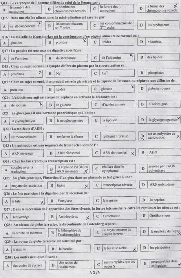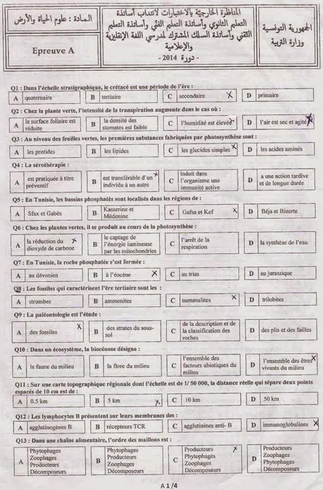 كاباس دورة 2014 في مادة علوم الحياة و الارض مرفق بالإصلاح