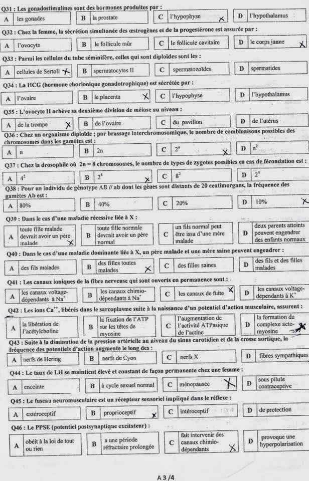 كاباس دورة 2014 في مادة علوم الحياة و الارض مرفق بالإصلاح - فضاء التميز للتعليم