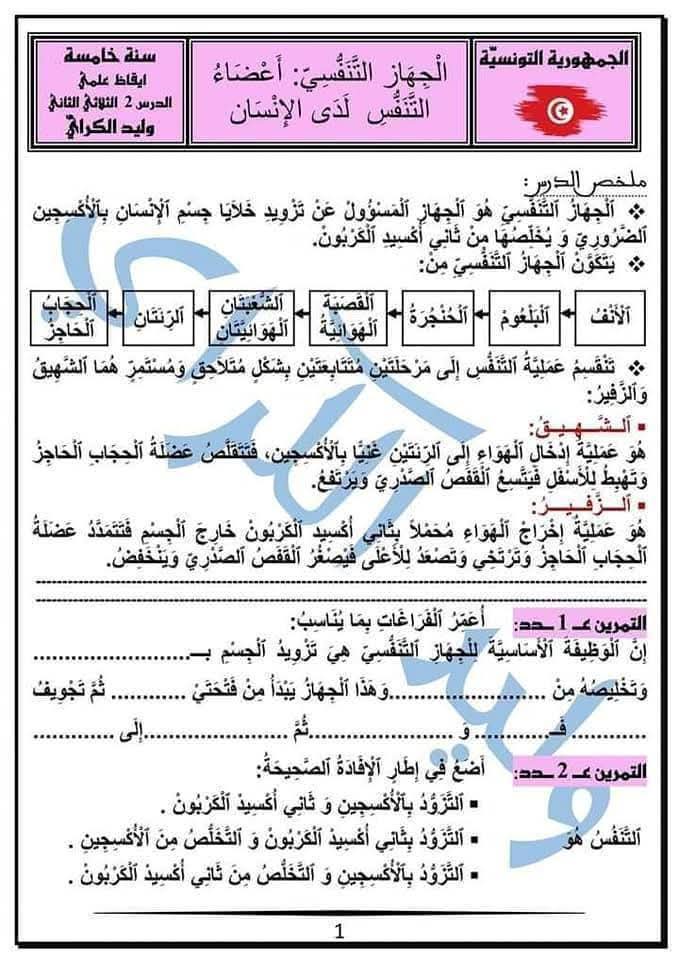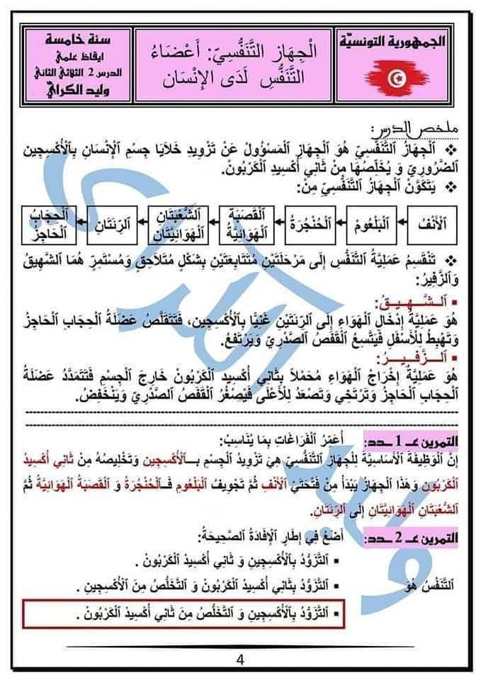 كراس الإيقاظ العلمي سنة خامسة الثلاثي الثاني ملخصات و تمارينات مع الإصلاح