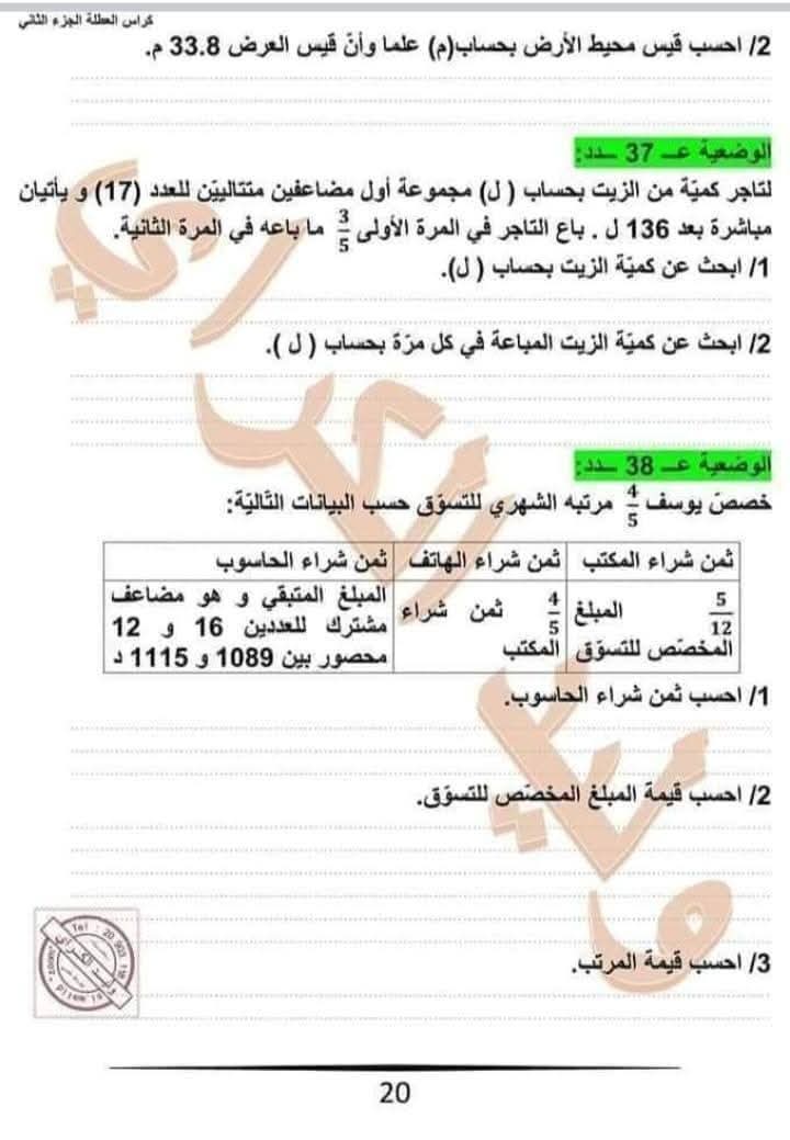 كراس الرياضيات النموذجية الثلاثي الثاني لتلاميذ السنة السادسة 6️⃣ مرفقة بالإصلاحبواسطة ADMIN / 22 ديسمبر، 2025 كراس الرياضيات النموذجية الثلاثي الثاني لتلاميذ السنة السادسة 6️⃣ مرفقة بالإصلاح
