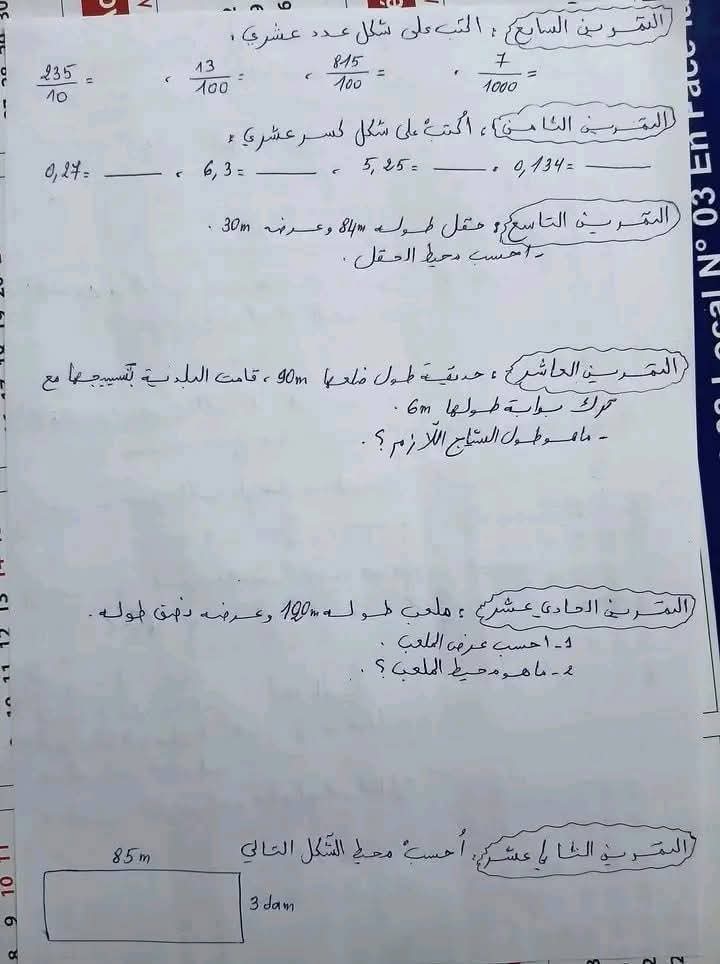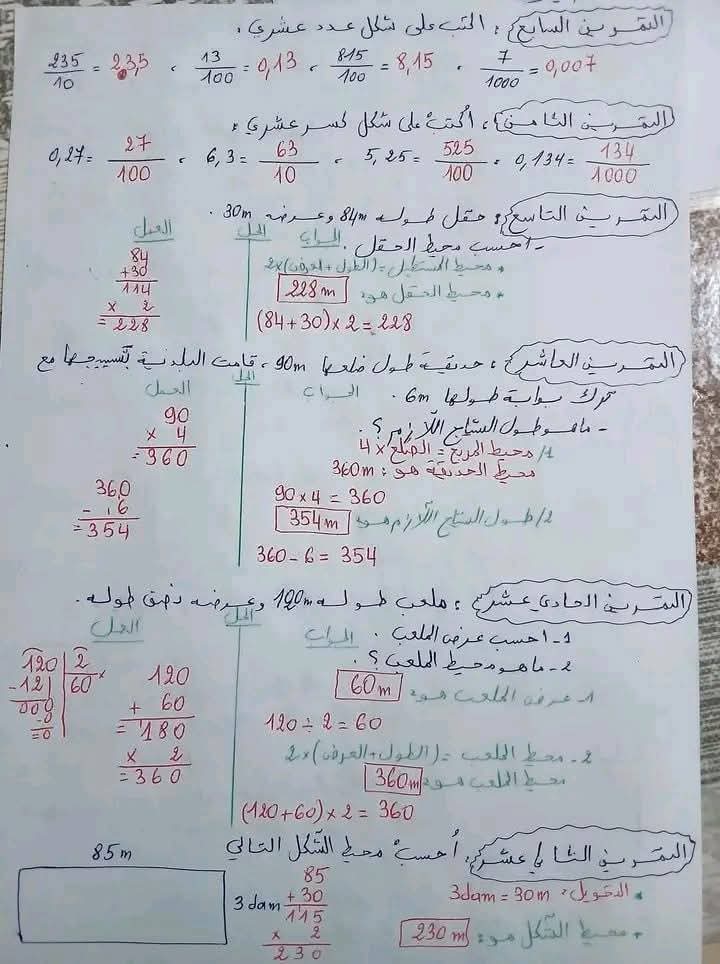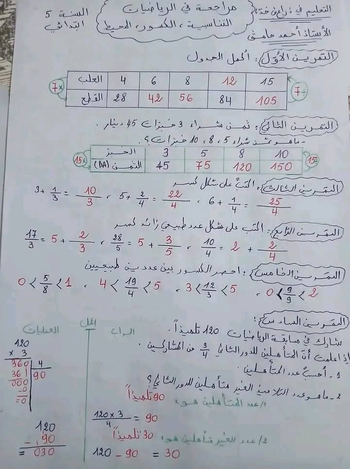مراجعة قيمة في الرياضيات مع الحل لأبطال السنة الخامسة 5️⃣ ابتدائي