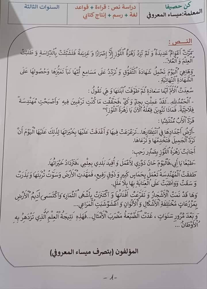 ملف ثري جداً بمحتواه خير معين لأبنائكم قبل الإمتحانات لأبطال السنة الثالثة 3️⃣