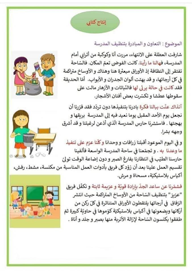 ملف قيم في الإنتاج الكتابي مرفق بالإصلاح لتلاميذ السنة الثالثة 3️⃣ الثلاثي الأول
