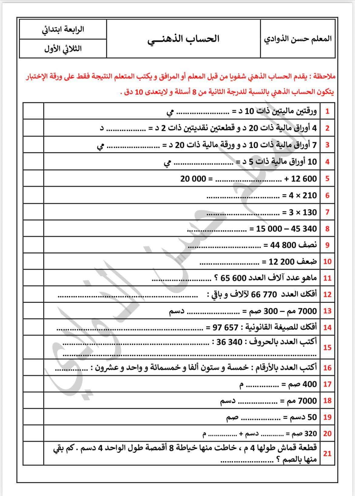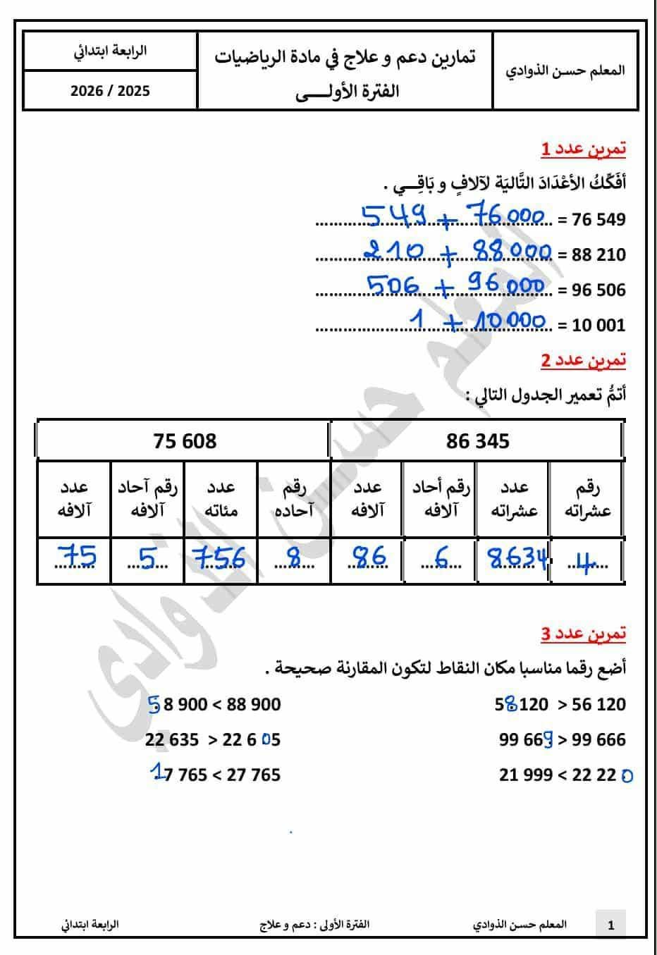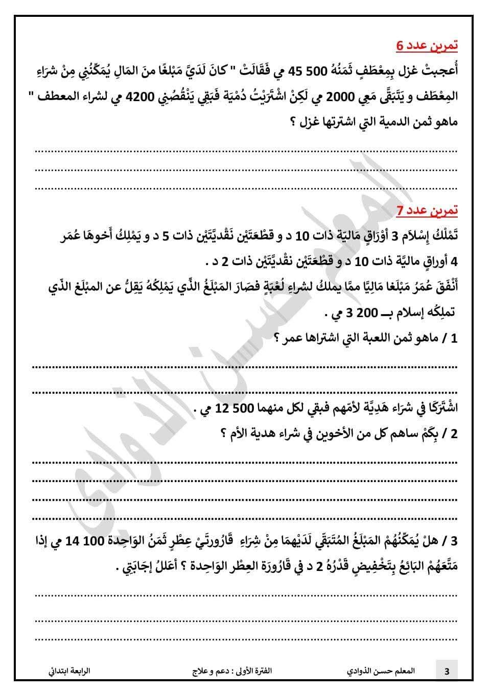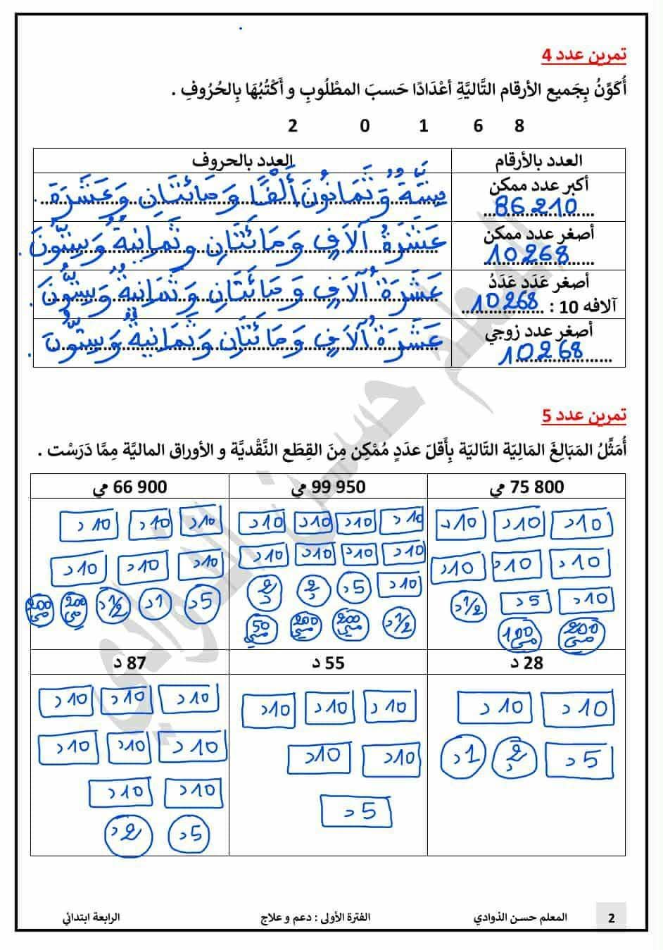 ملف مميز في الرياضيات مرفق بالإصلاح لأبطال السنة الرابعة 4️⃣ - فضاء التميز للتعليم
