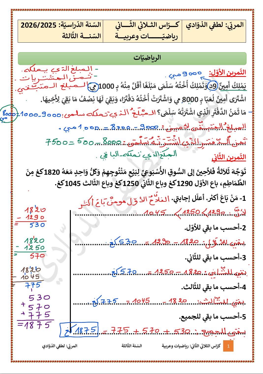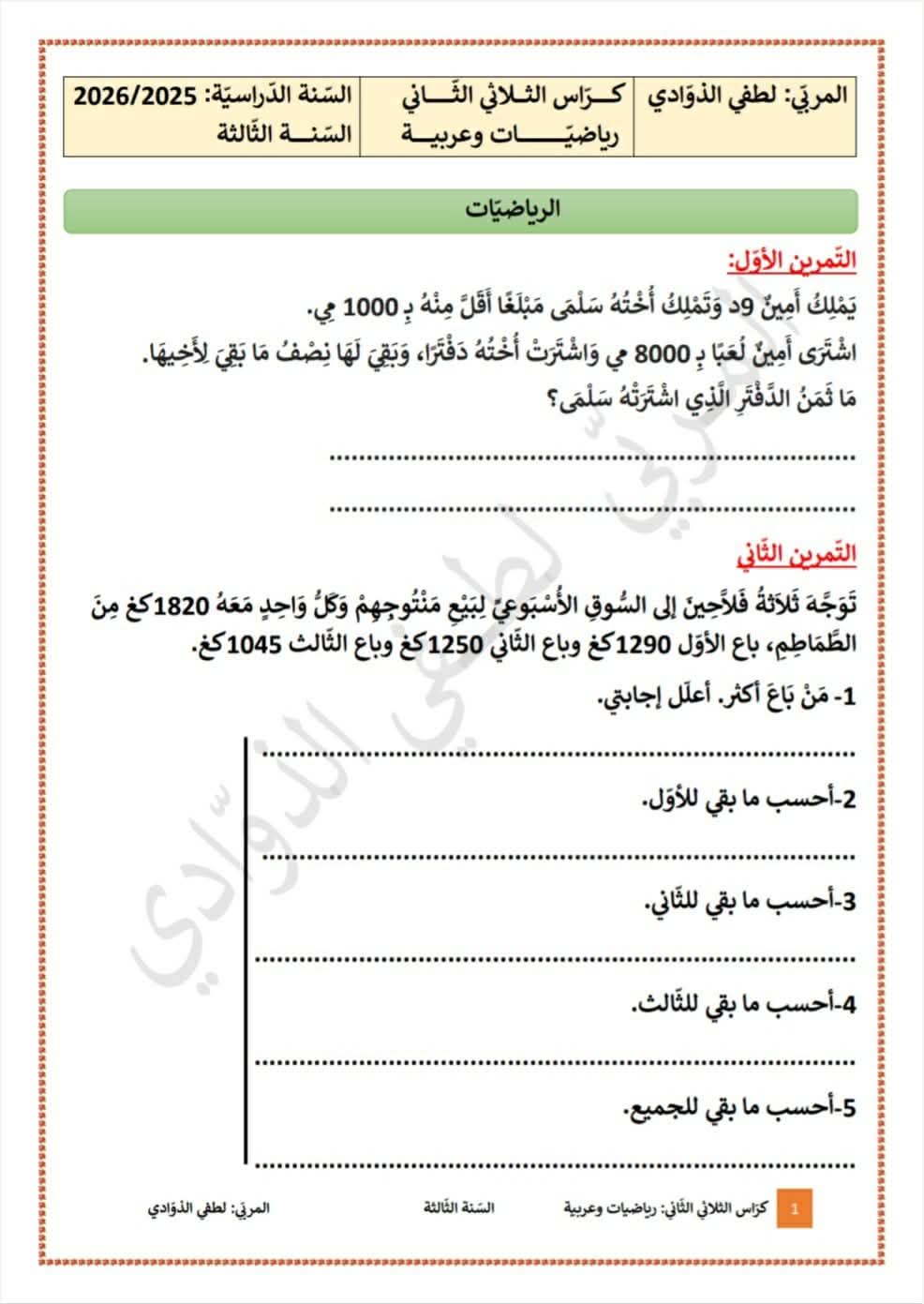 ملف مميز في الرياضيات وقواعد لغة و إملاء لأبطال السنة الثالثة 3️⃣ الثلاثي الثانيبواسطة ADMIN / 17 يناير، 2026 ملف مميز في الرياضيات وقواعد لغة و إملاء لأبطال السنة الثالثة 3️⃣ الثلاثي الثاني