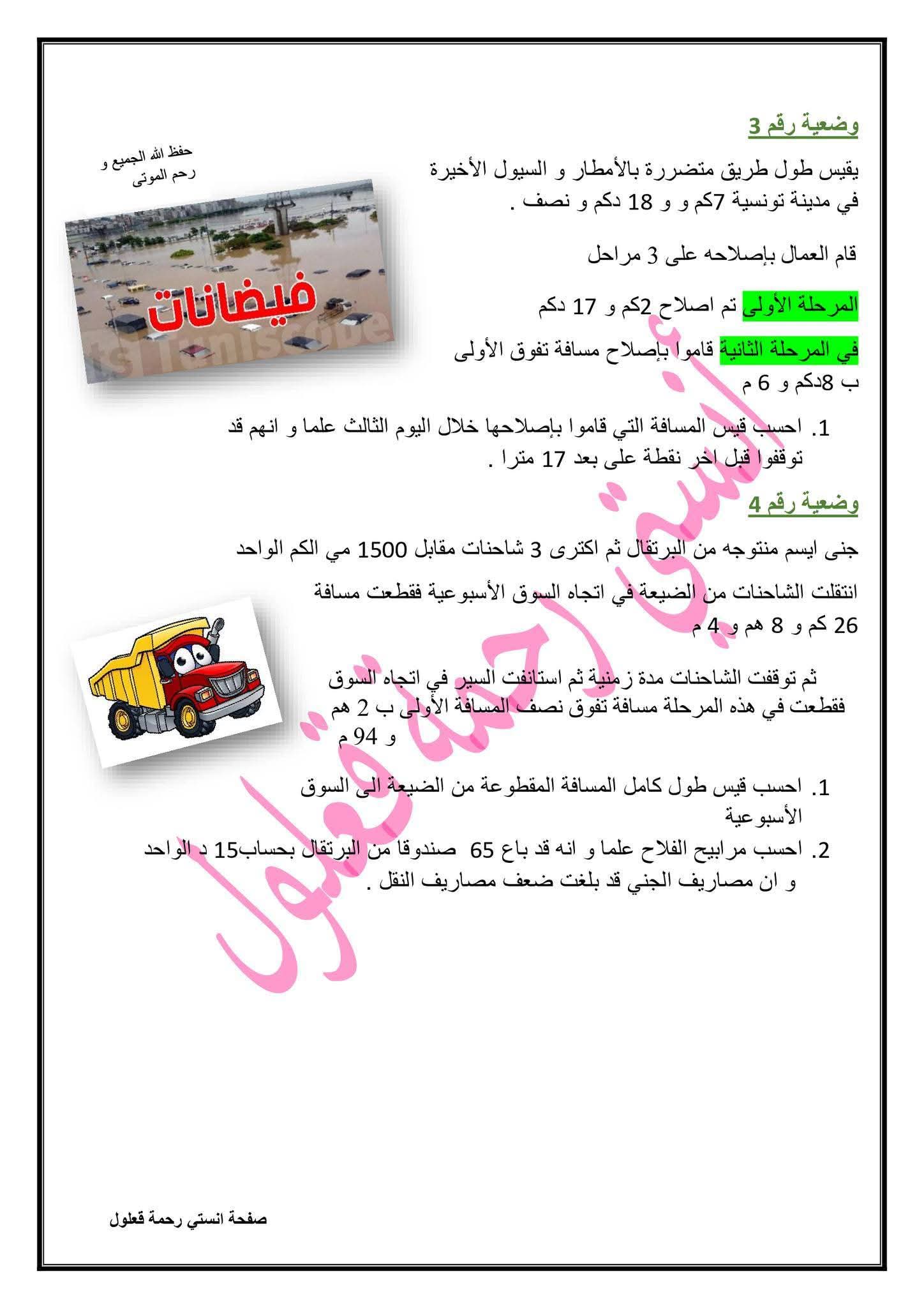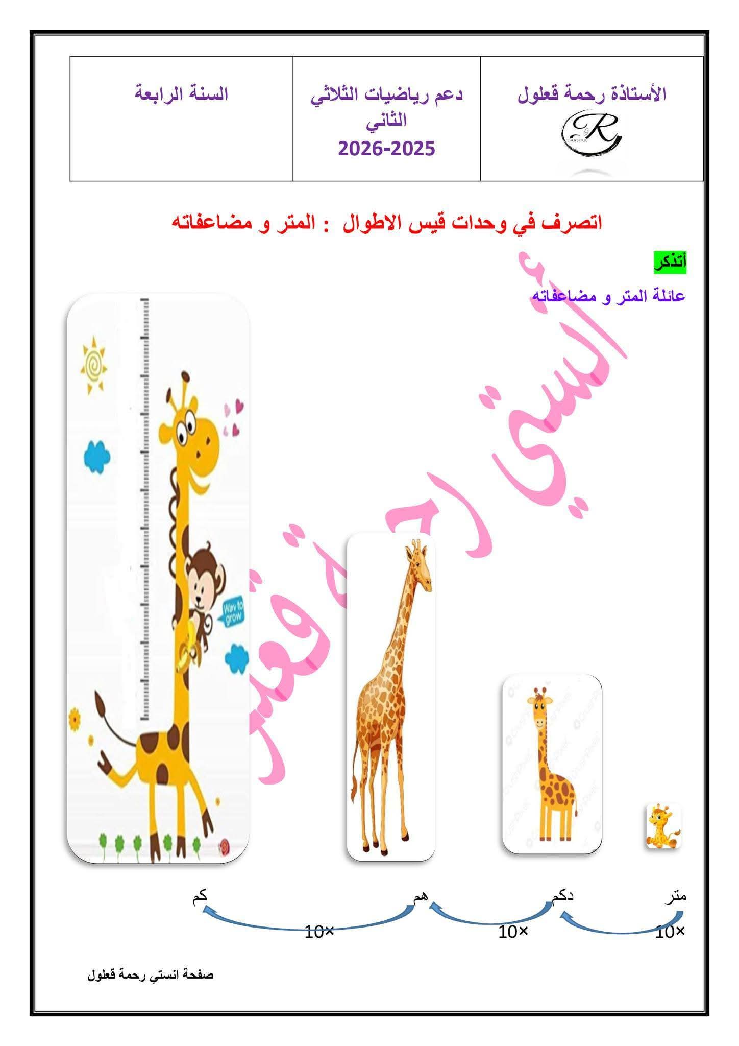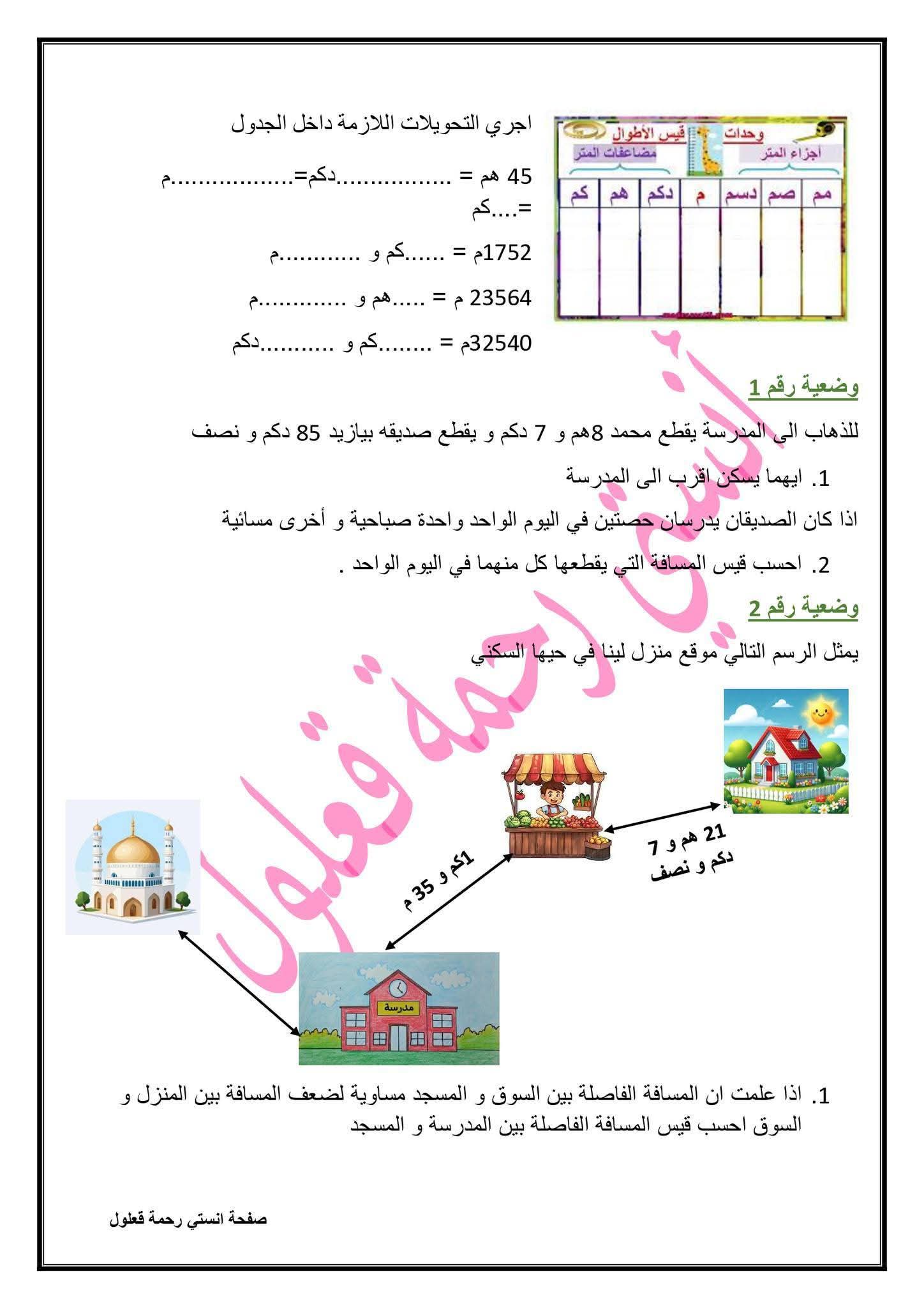 وضعيات توظف الضرب في رقمين و التصرف في وحدات قيس الاطوال المتر و مضاعفاته لعصافير السنة الرابعة 4️⃣