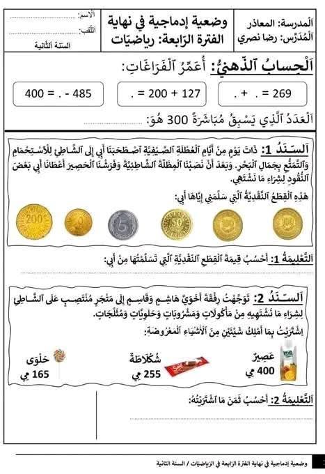 أنصحكم بالاطلاع عليها وإنجازها، فهي مفيدة جدًا للمراجعة وترسيخ المكتسبات لدى التلميذ.