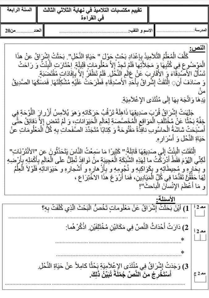 هذه فكرة عامة عن برنامج الثلاثي الثالث للسنة الرابعة ابتدائي في تونس في مختلف المواد، حتى تكون الصورة واضحة للتلميذ أو الولي.