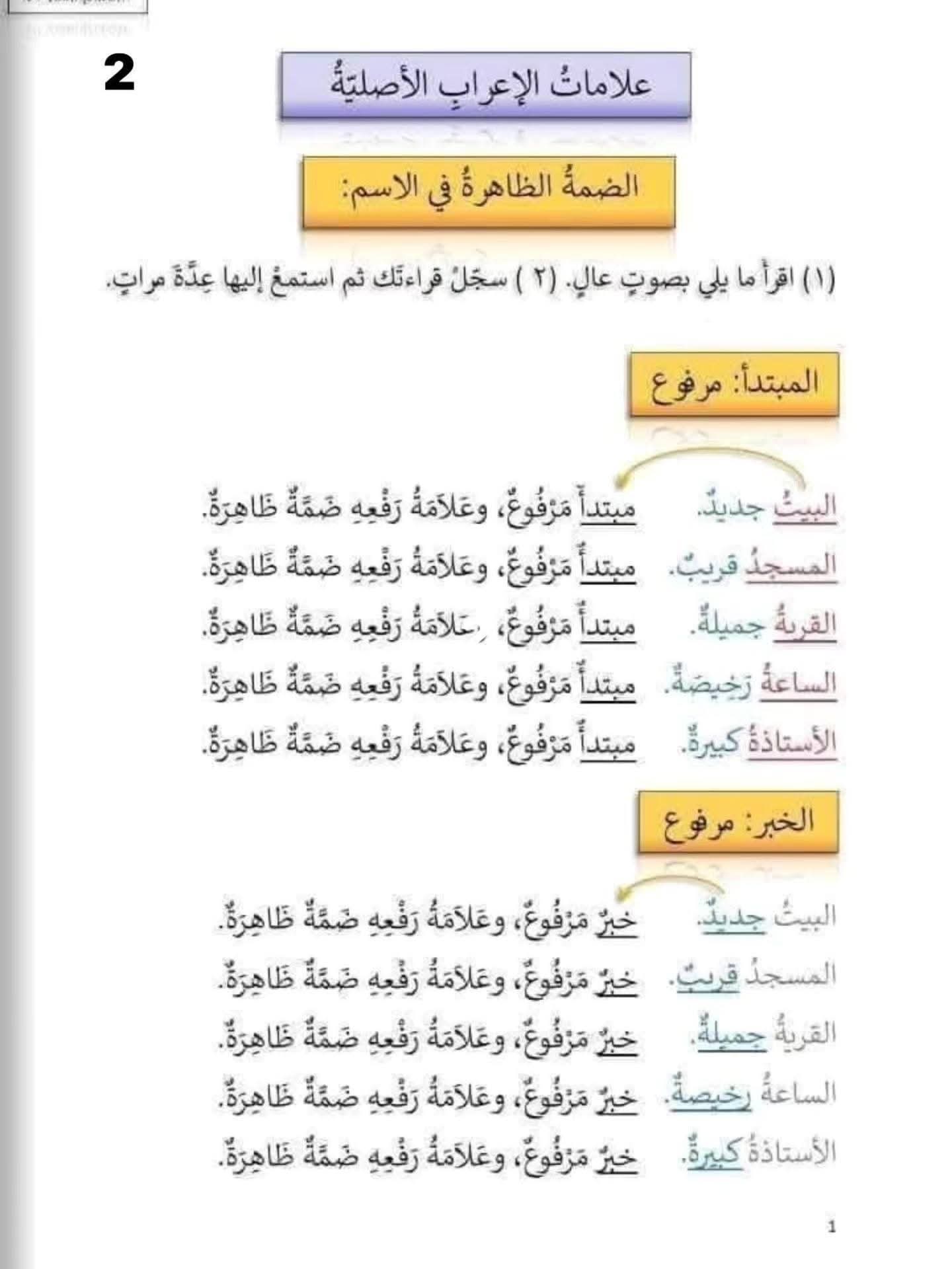 👉 التلميذُ: فاعل مرفوع وعلامة رفعه الضمة