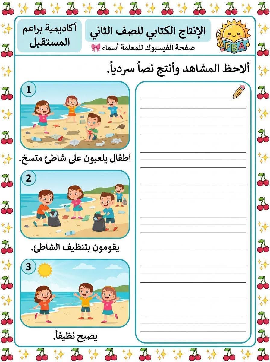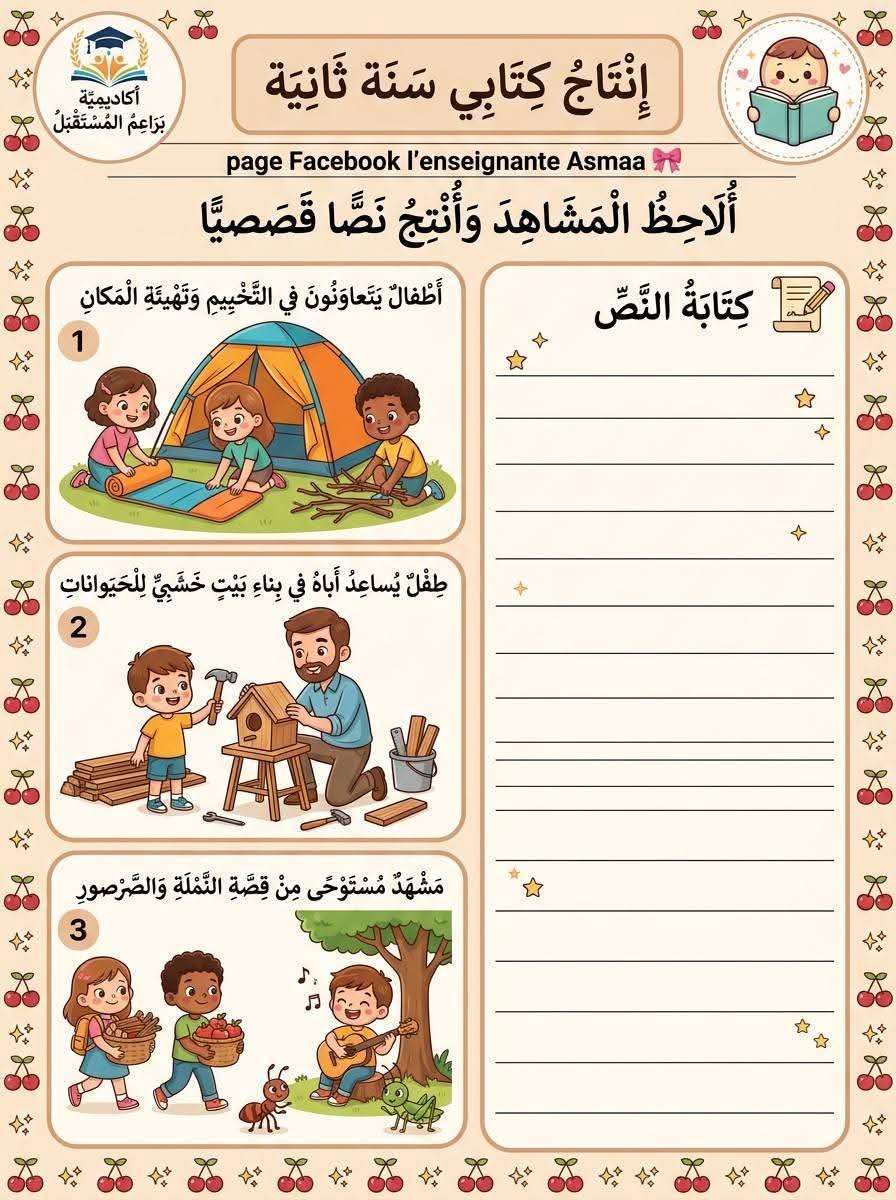 باقة مميّزة ورائعة من الإنتاجات الكتابيّة موجّهة إلى براعم السّنة الثانية 2️⃣، تجمع بين المتعة والفائدة في آنٍ واحد 🌸✏️