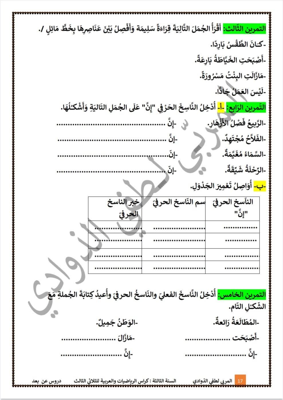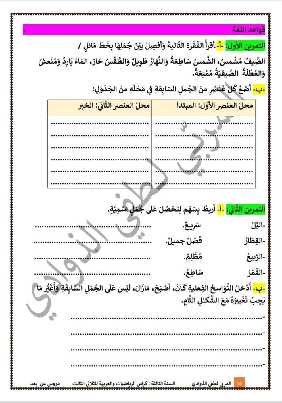 محتوى تعليمي متكامل يجمع بين دروس قواعد اللغة وتقييمات تطبيقية مرفقة بالإصلاح، موجّه لتلاميذ السنة الثالثة 3️⃣ خلال الثلاثي الثالث، ويهدف إلى دعم التلميذ في هذه المرحلة الحاسمة من السنة الدراسية وتعزيز جاهزيته للاختبارات.