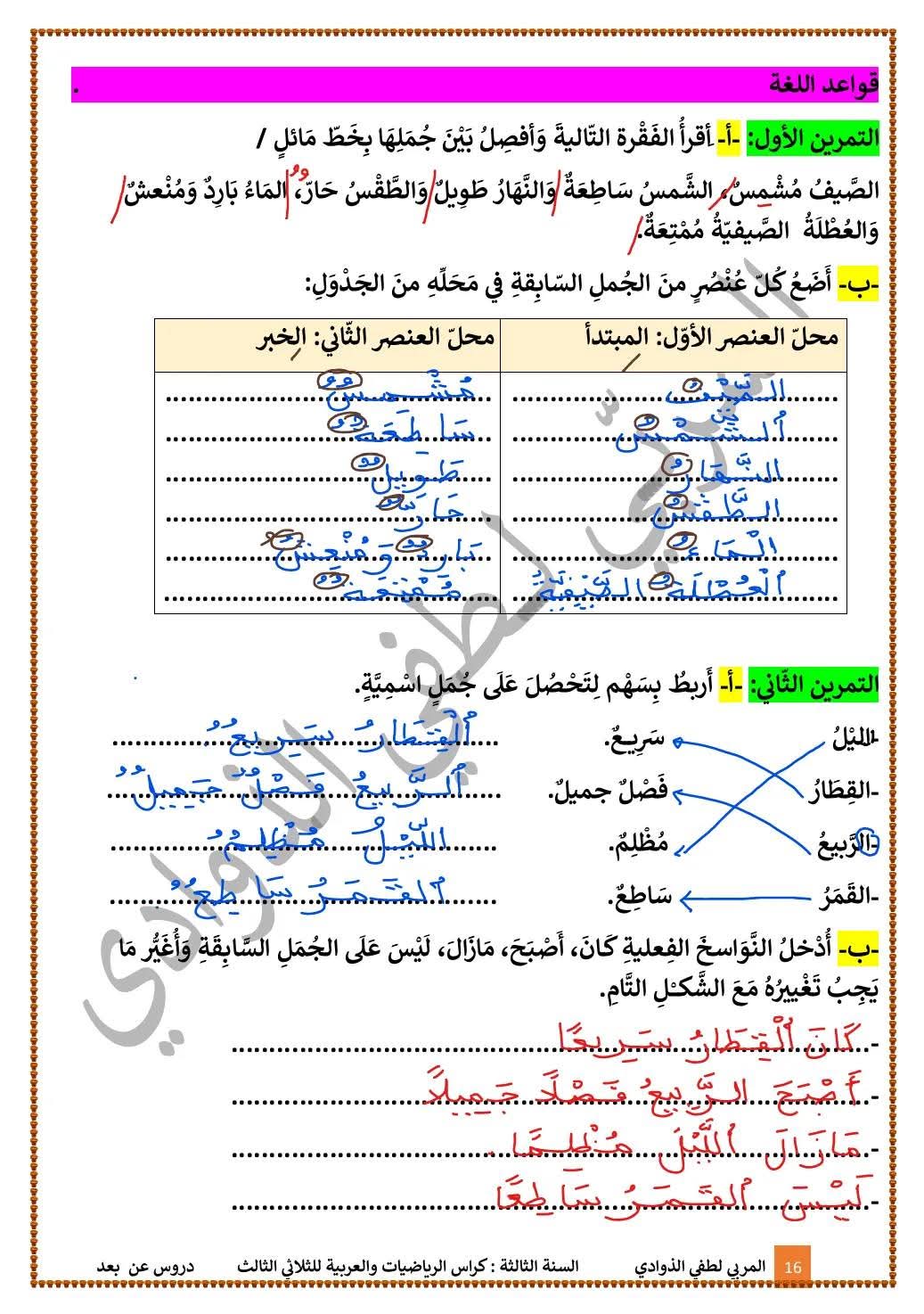 قواعد و تقييمات مرفقة بالإصلاح في قواعد اللغة لتلاميذ السنة الثالثة 3️⃣ الثلاثي الثالث