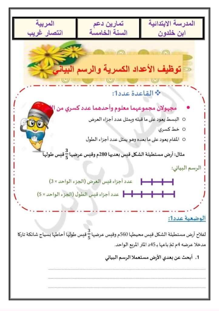 تمارين دعم مرفقة بالإصلاح المدقق في الرياضيات لتلاميذ السنة الخامسة5️⃣