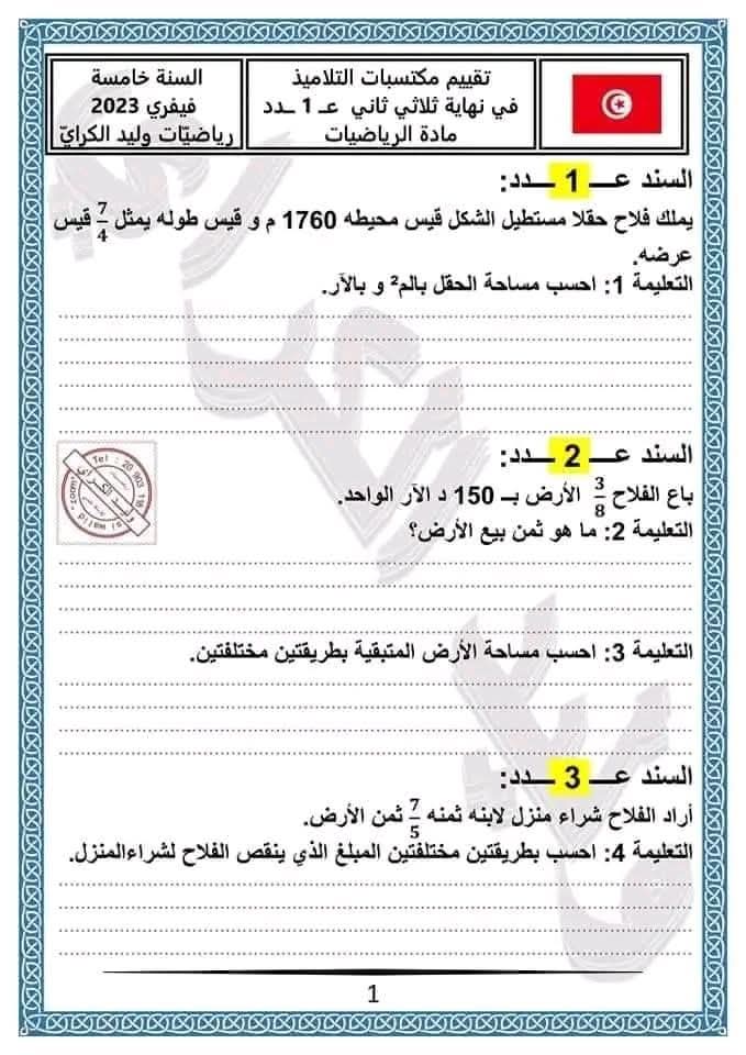 ملف تقاييم الخامسة5️⃣ الثلاثي الثاني مرفق بالإصلاح في جميع المواد doss5eme