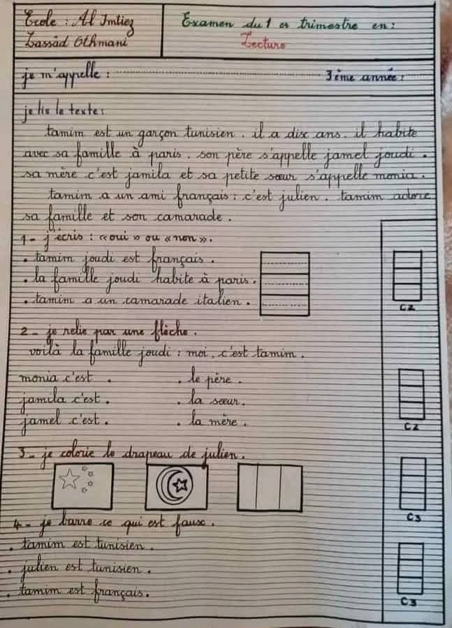 إمتحانات الفرنسية سنة الثالثة 3️⃣ مرفقة بالإصلاح الثلاثي الأول