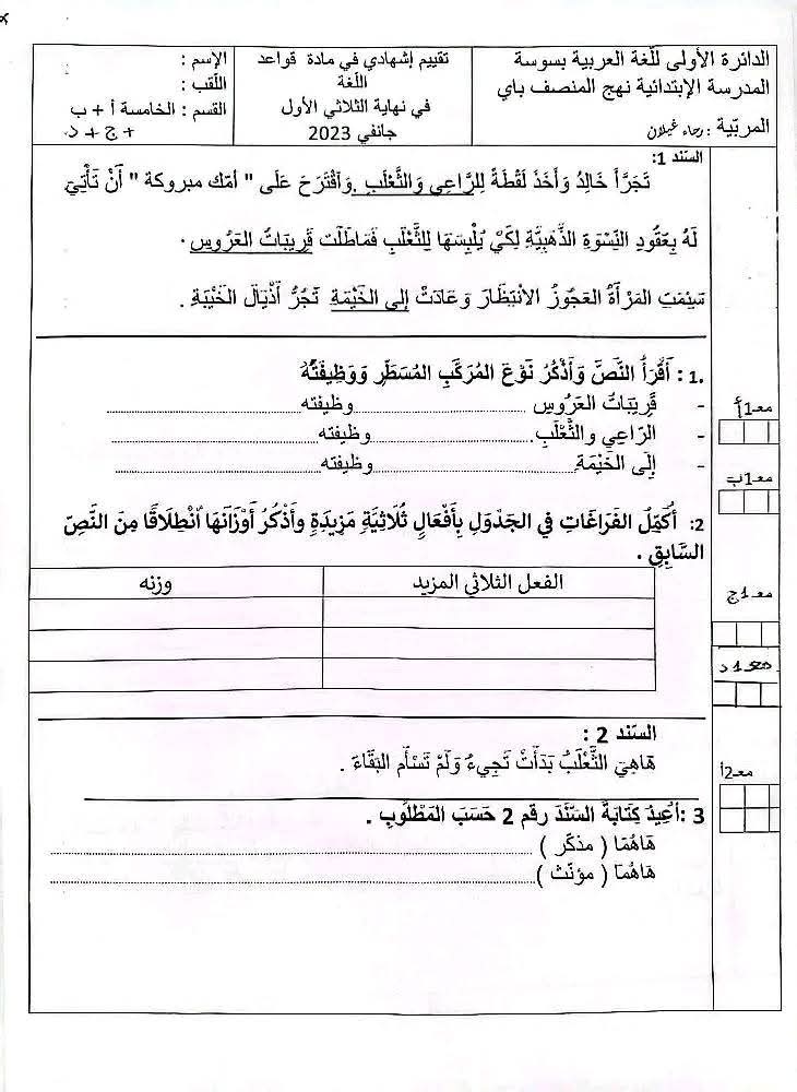 مراجعة مفيدة في قواعد اللغة سنة خامسة5️⃣ الثلاثي الأول