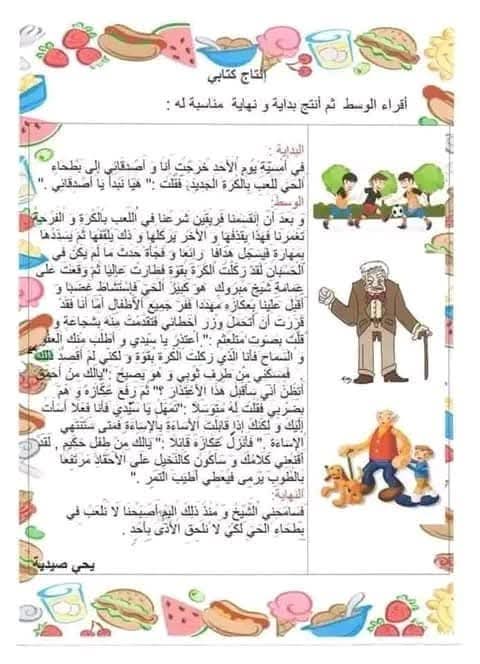 إنتاج كتابي سنة ثالثة3️⃣ و رابعة4️⃣ الثلاثي الثاني pro3eme