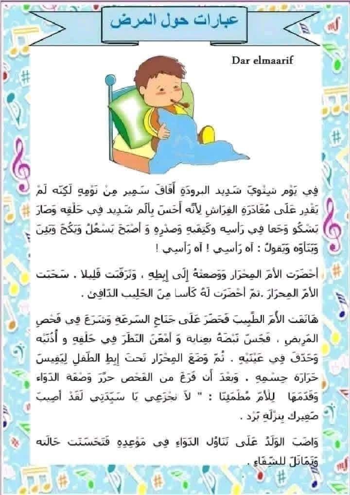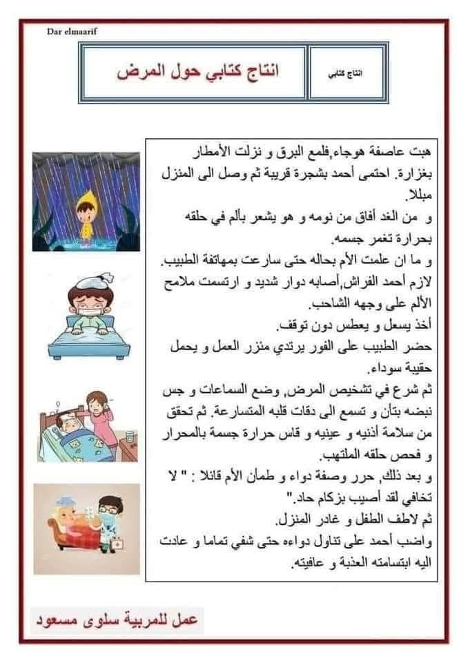 إنتاج كتابي للثانية2️⃣ و الثالثة3️⃣ حول المرض والشفاء الثلاثي الثاني