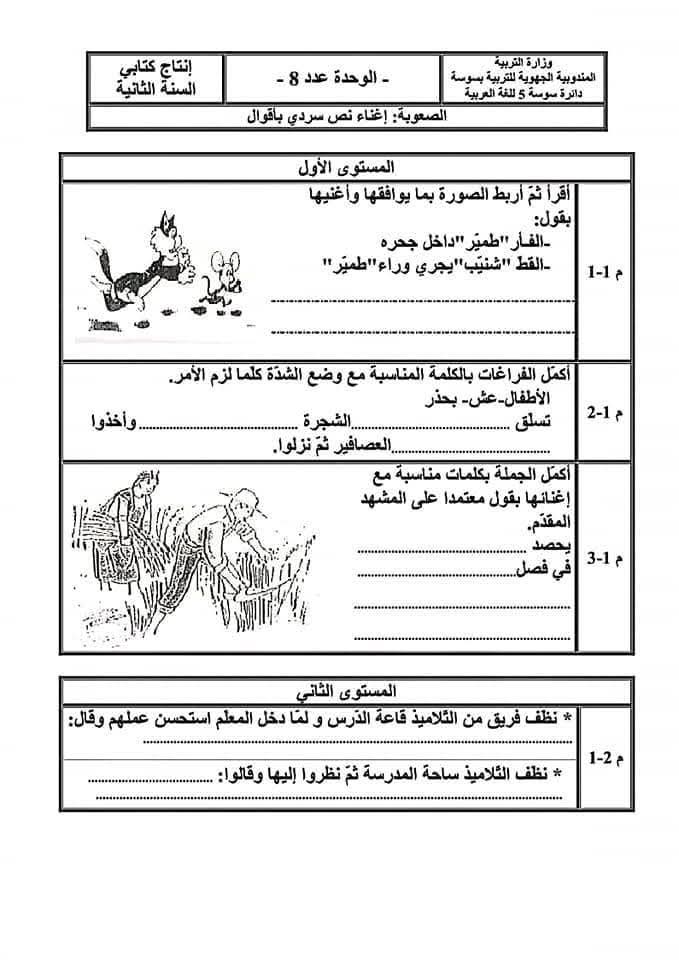 إنتاج كتابي سنة ثانية 2️⃣ من الوحدة صفر حتى الوحدة الثامنة